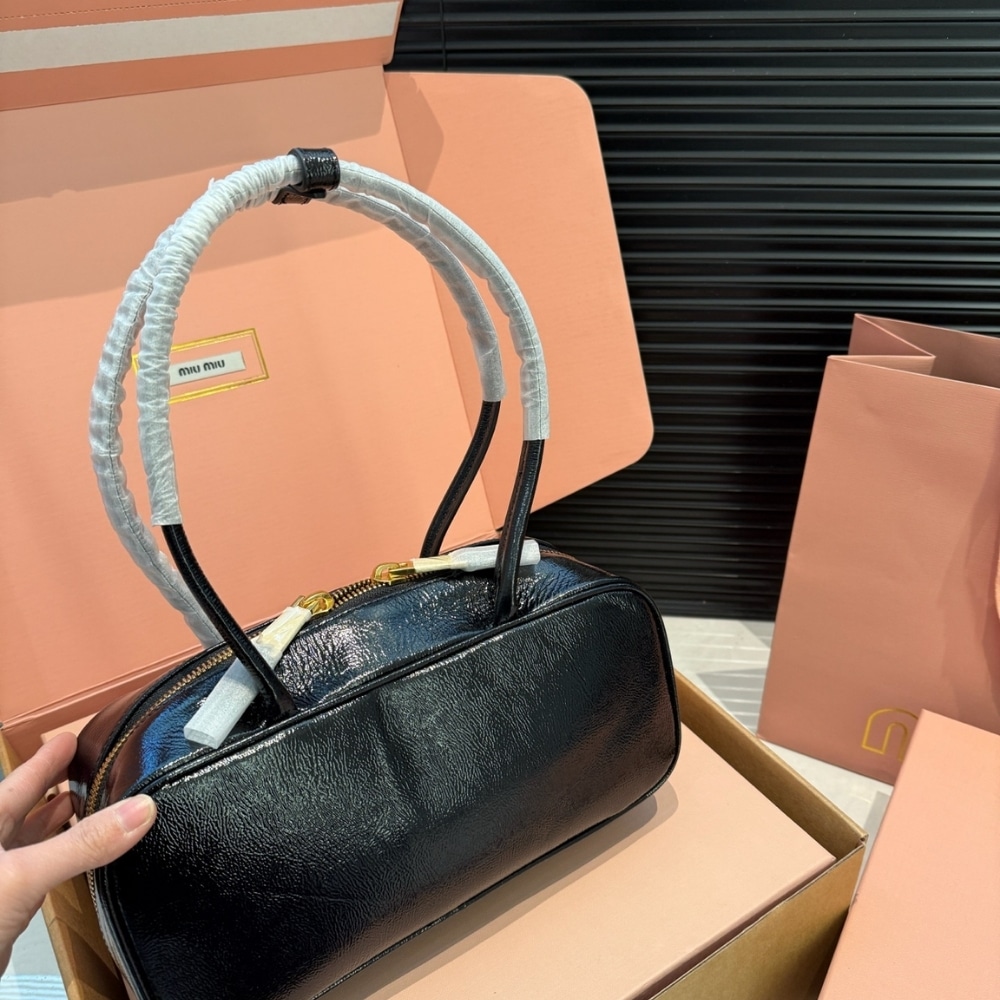 MiuMiu Beau Naplak Patent Leather Bag Black 28Cm 5BB173 ADNT F0002 V OLO