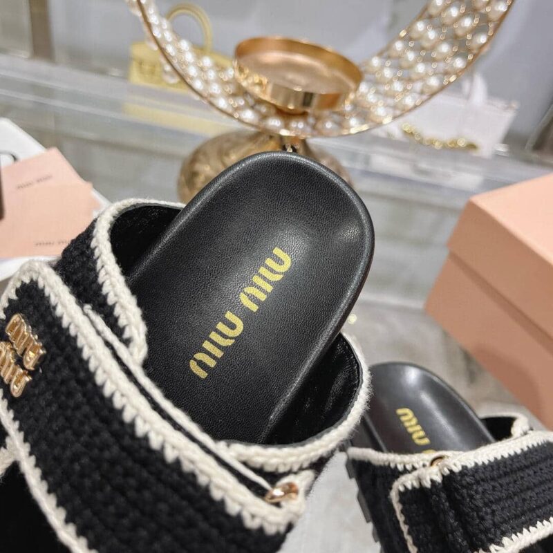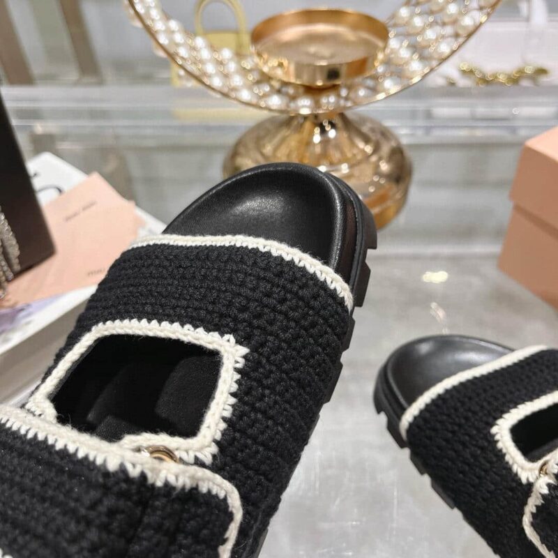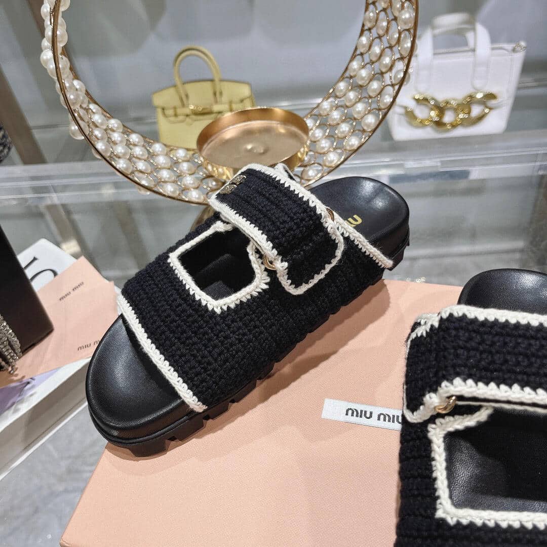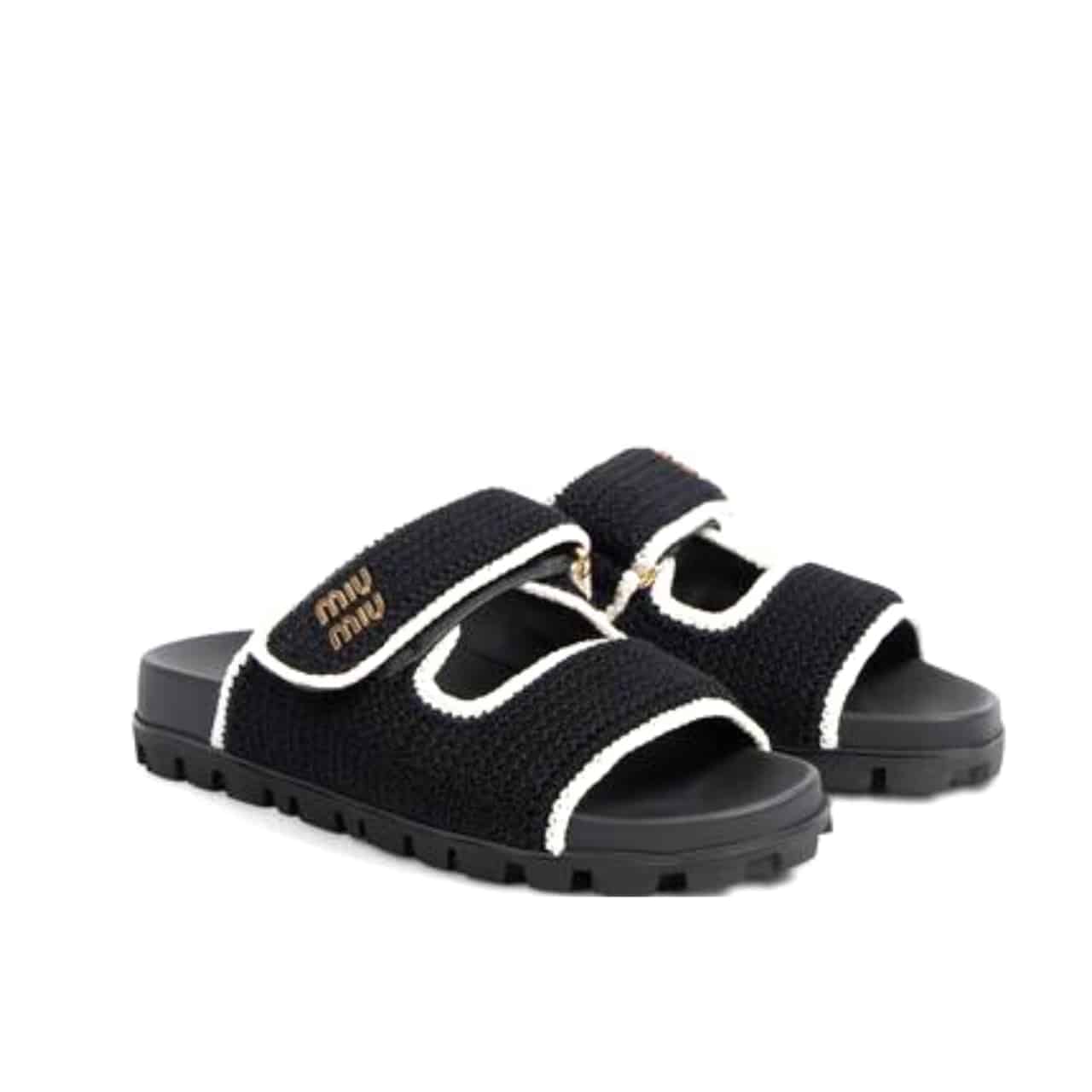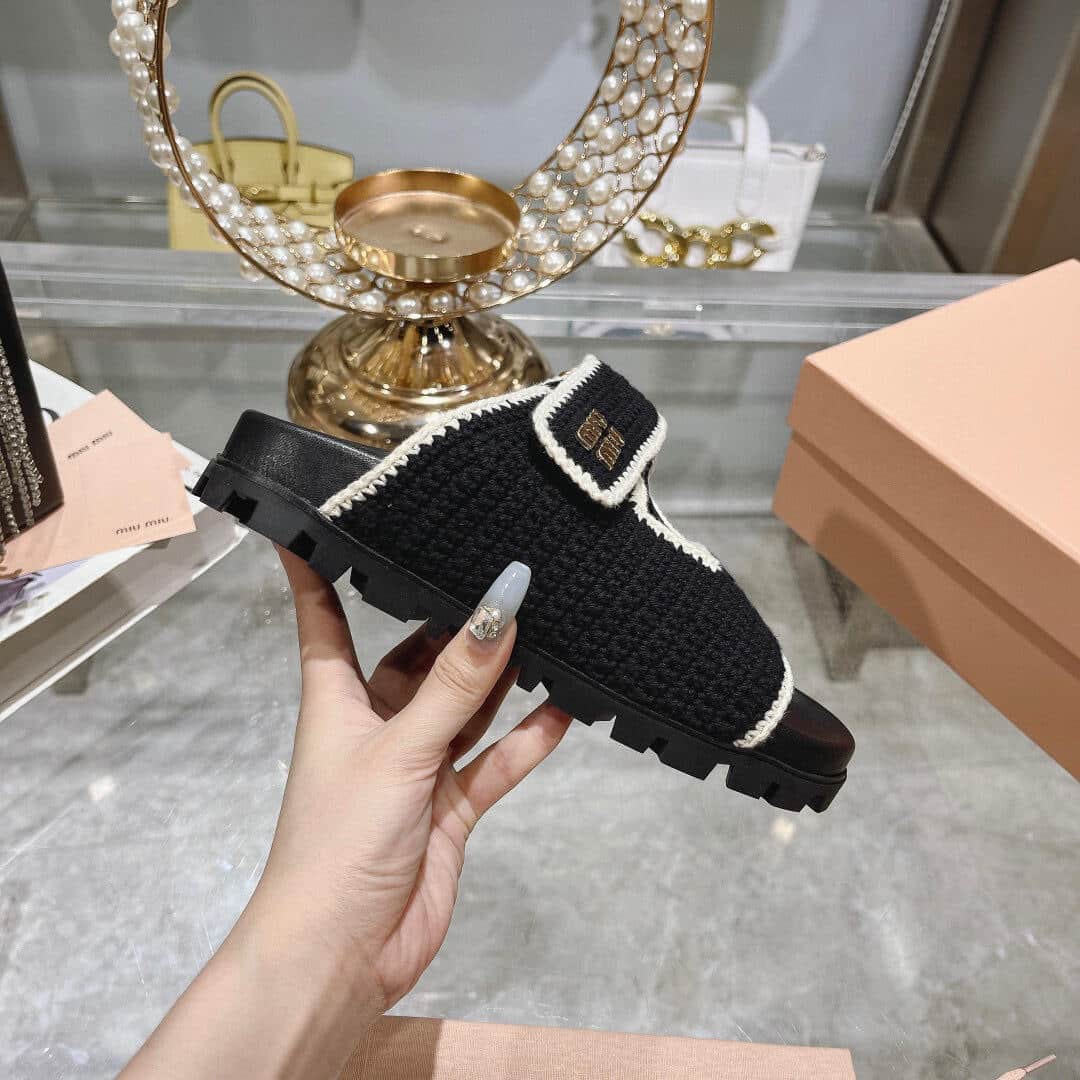 MIUMIU CROCHET KNIT SLIDES BLACK