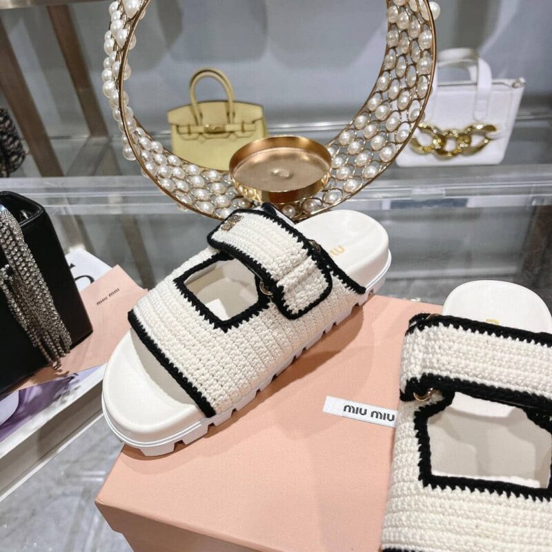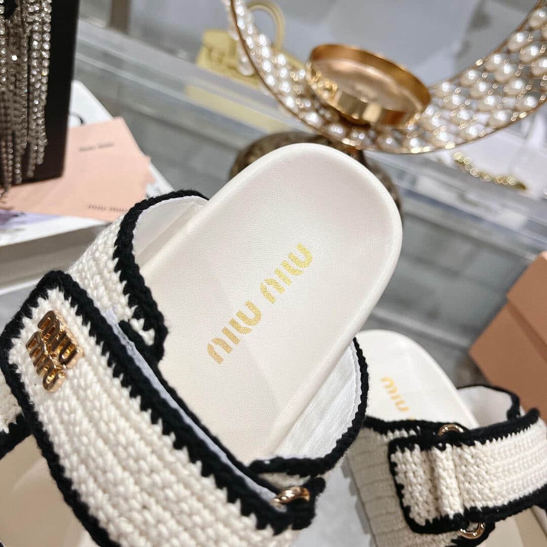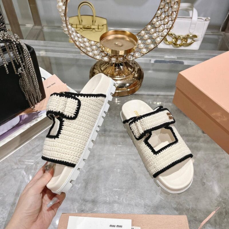 Miumiu Crochet Knit Slides White 5Xx641 2Cq2 F0A72 F 010