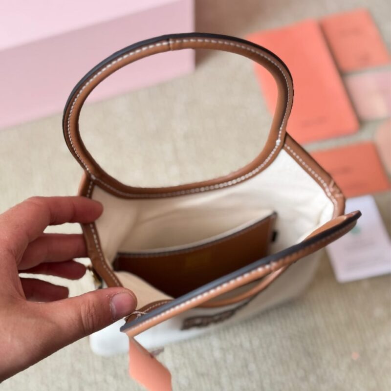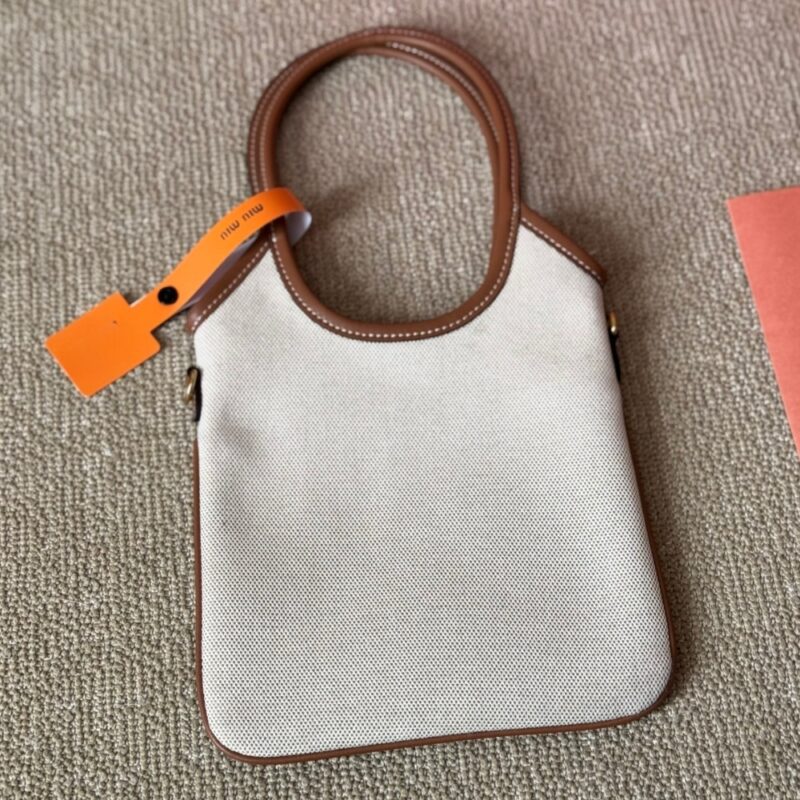 Miumiu Ivy Canvas And Leather Bag Beige 20cm 5BA281 ACRN F062F V OLF