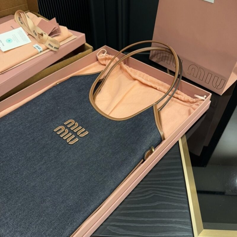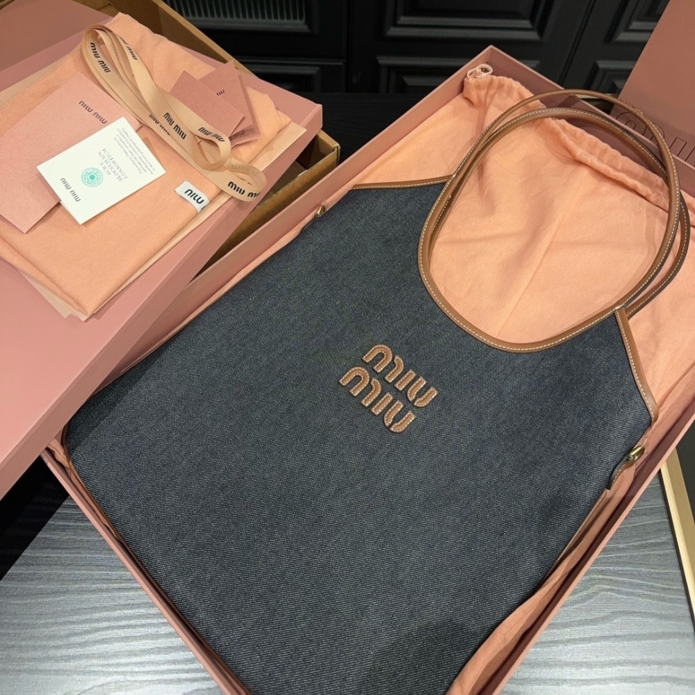 MiuMiu IVY Denim Bag Blue And Brandy 35Cm