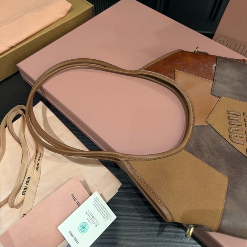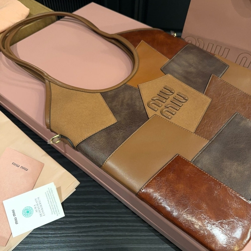 MiuMiu IVY Patchwork Bag Cognac 35Cm 5BG231 2CRI F0046 V MLN