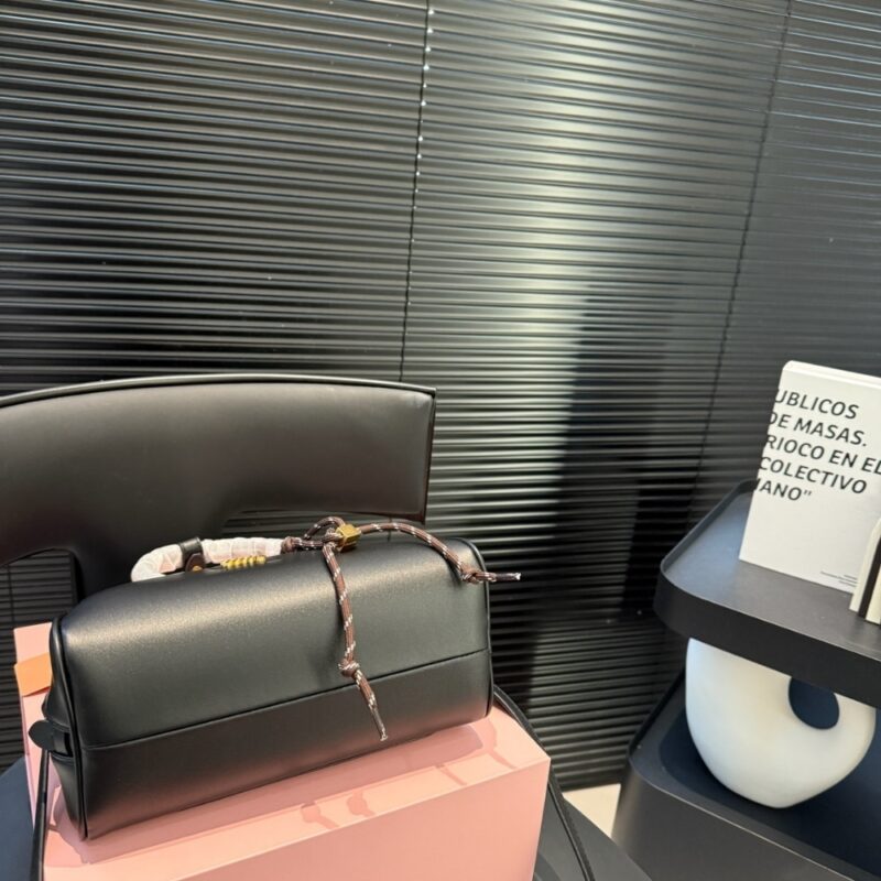 MiuMiu Leather Top Handle Bag Black 23Cm