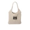 MiuMiu Raffia Effect Yarn And Cotton Tote Bag Chalk White And Black 36CM 5BG231 2CQY F0N13 V MRO