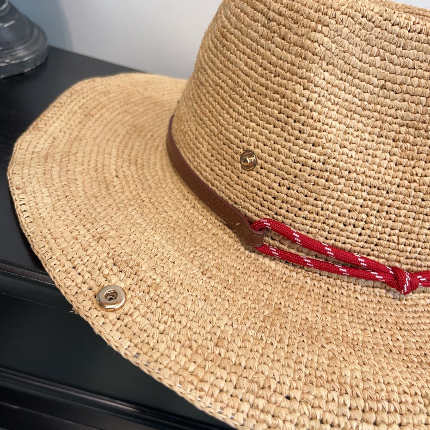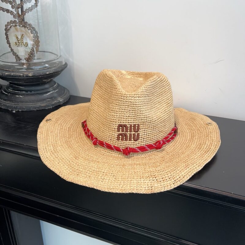 Miumiu Raffia Hat Beige And Burgundy 5HC335 2CWE F0Y59