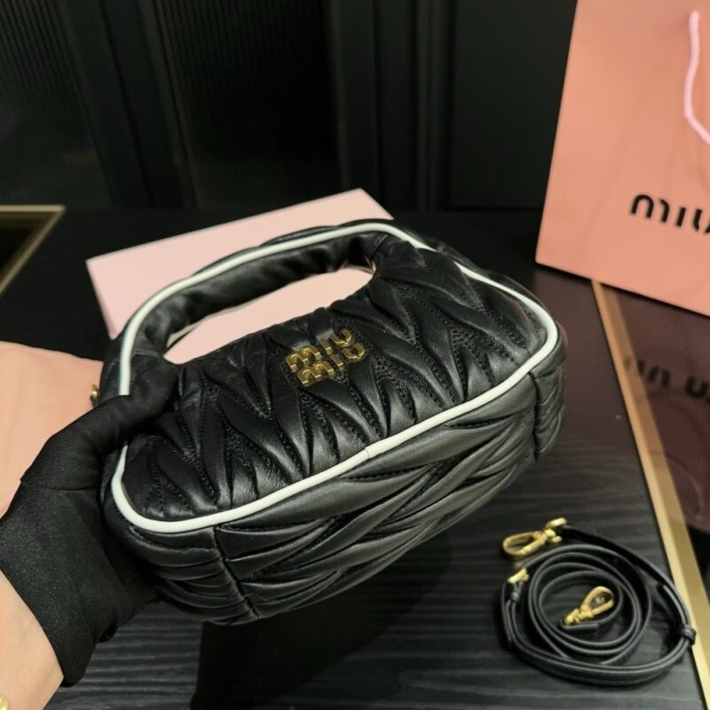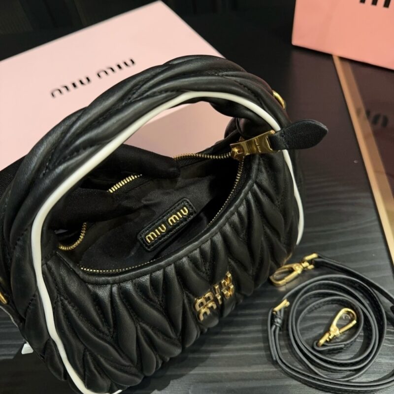 Miumiu Wander Matelassé Nappa Leather Bag Black And White 20 cm/ 7.9 inches