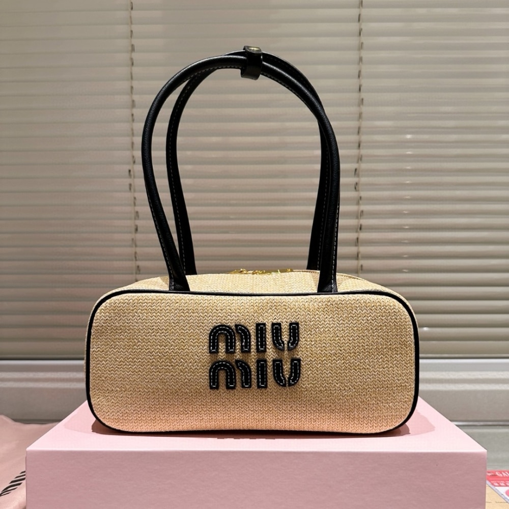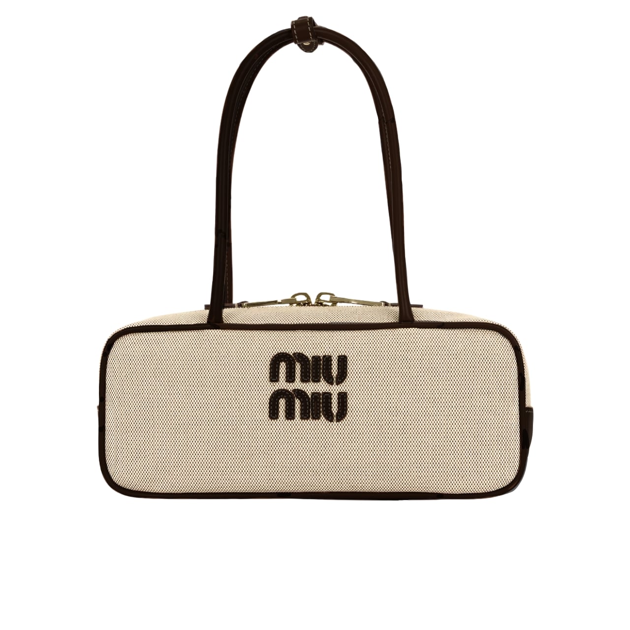 MiuMiu Women’s Canvas And Leather Bag Black/ 27 x 12 cm/ 10.6 x 4.7 inches