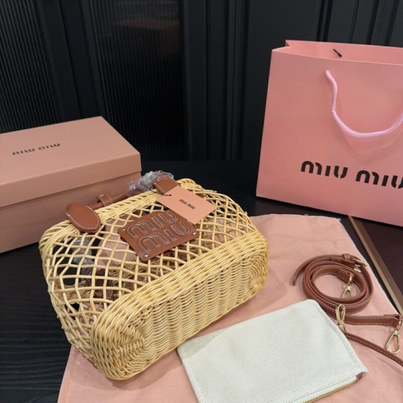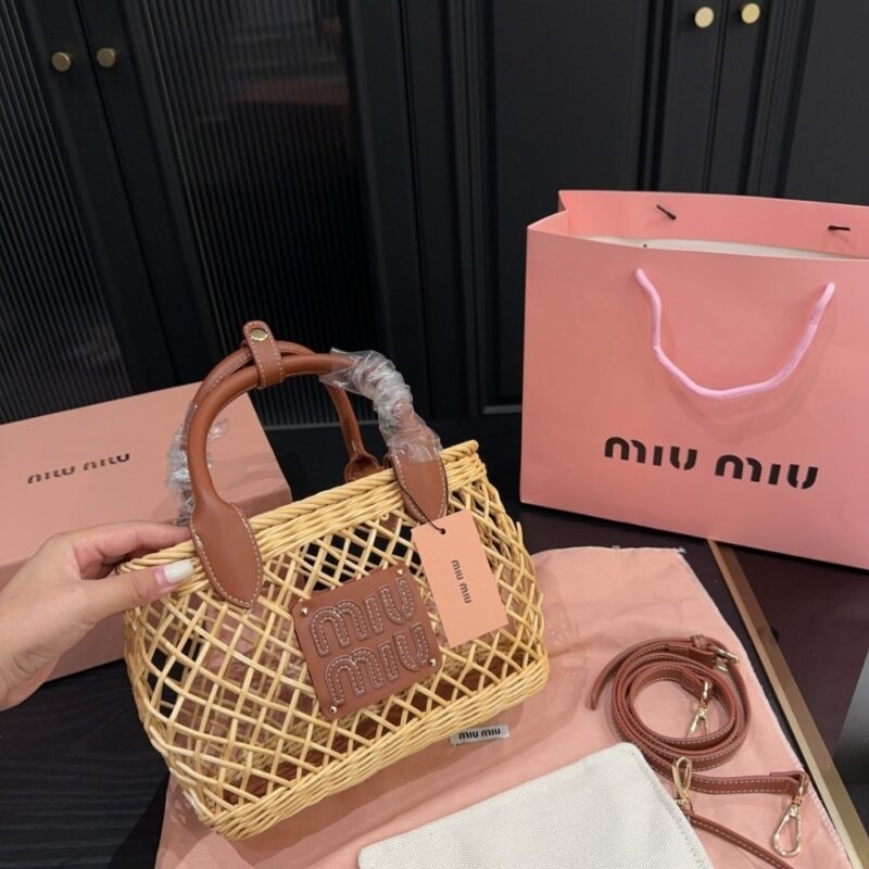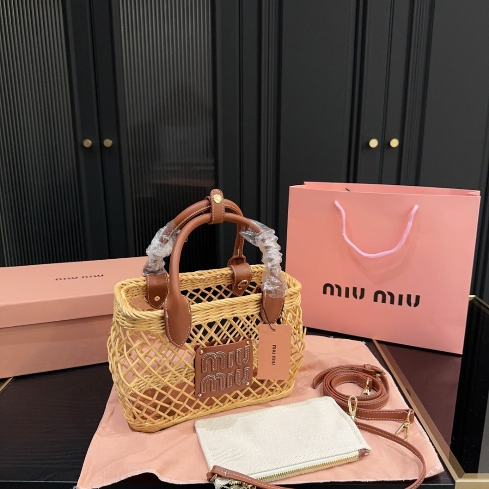 MiuMiu Woven Fabric Handbag Tan And Caramel 25Cm 5BA286 2CQV F0KFZ V OOO
