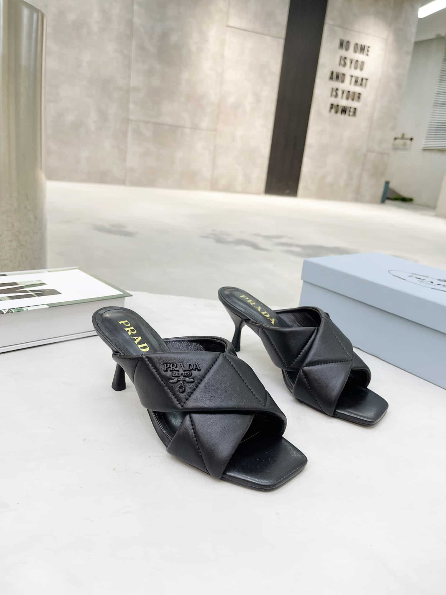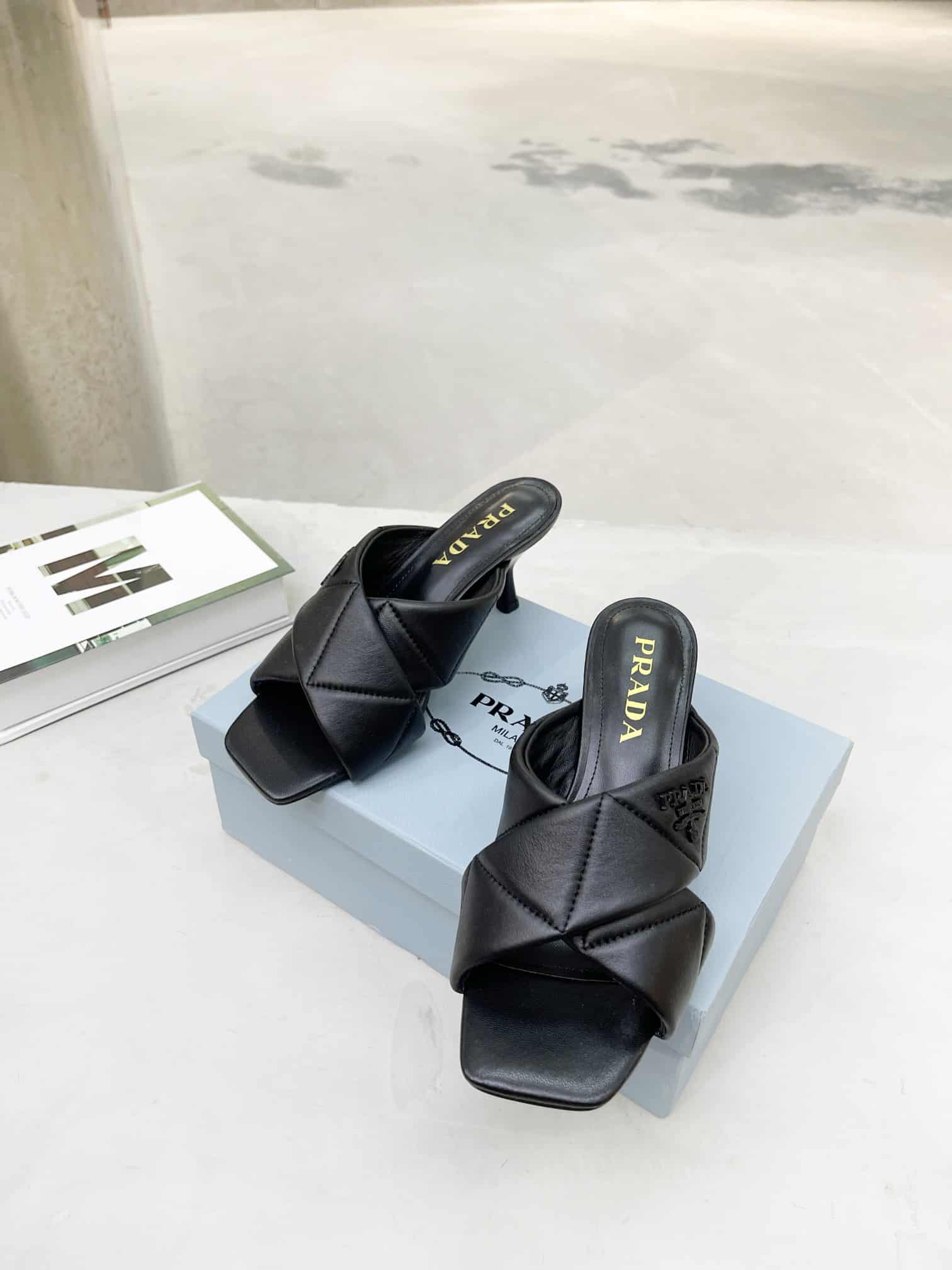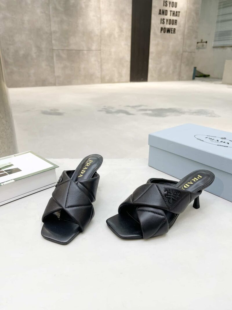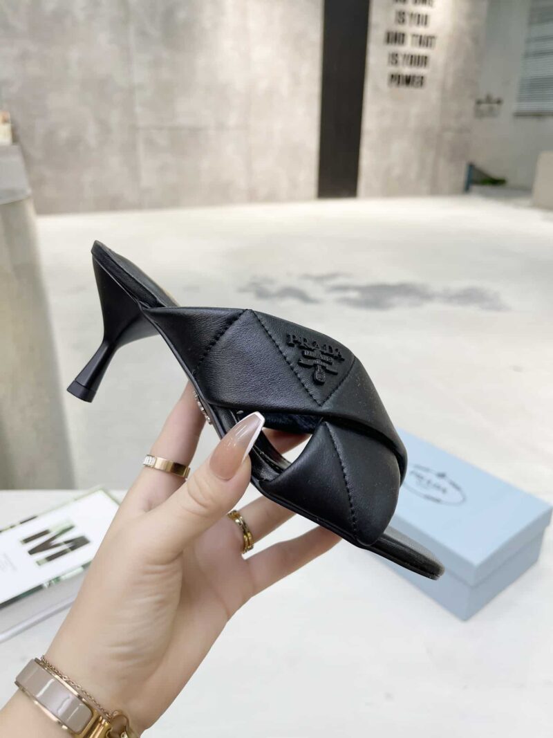PRADA BLACK QUILTED LEATHER MULE