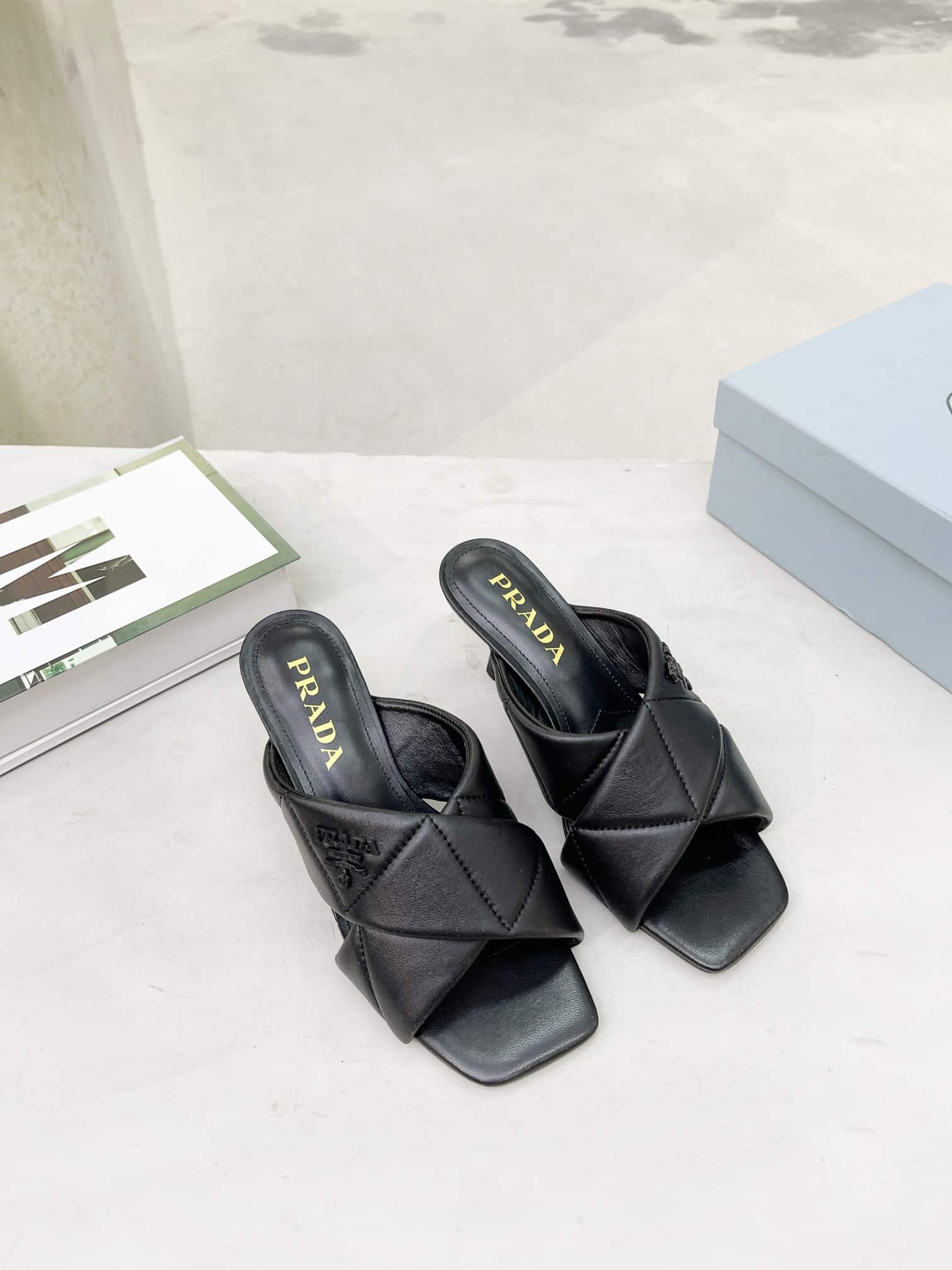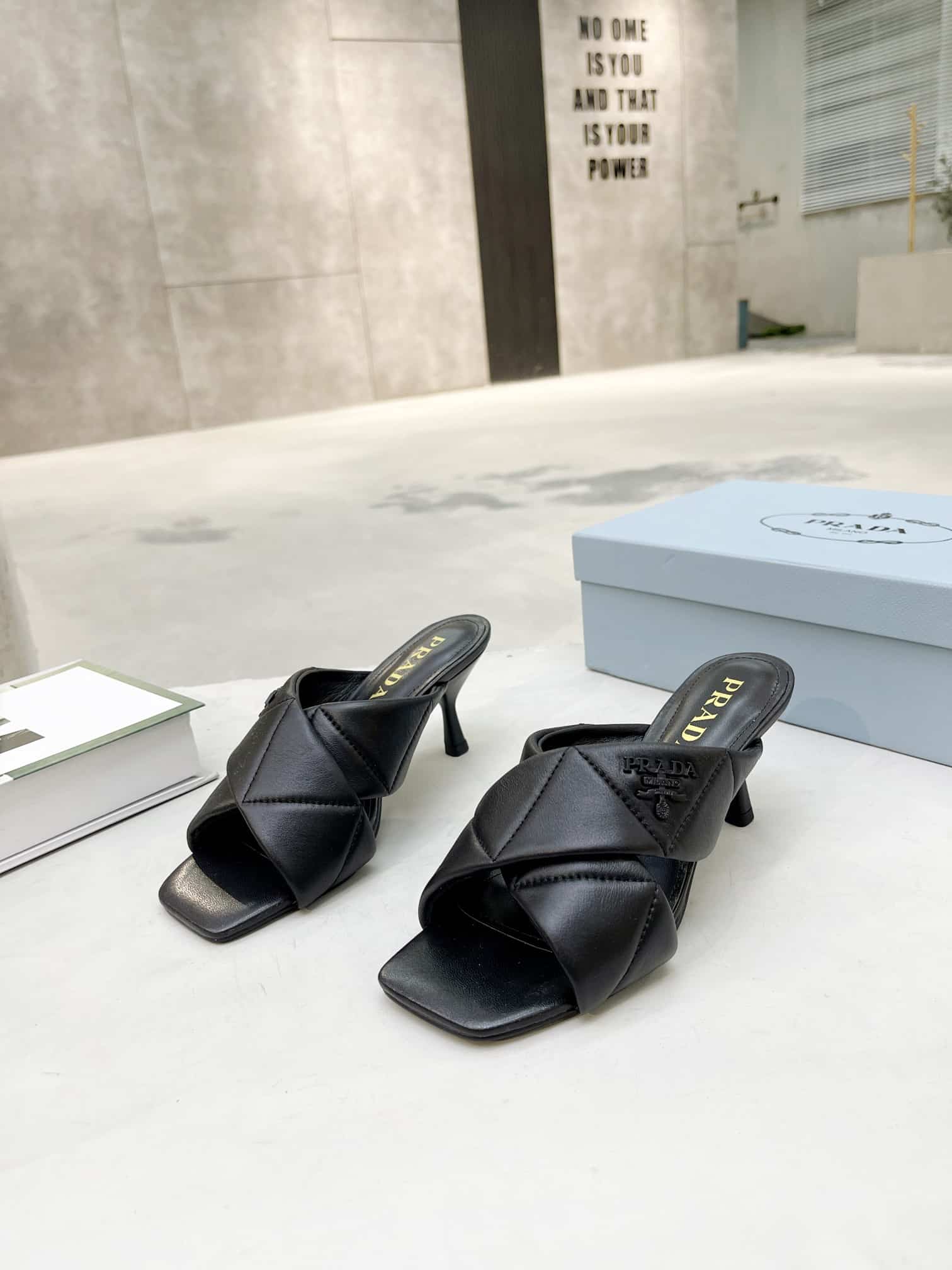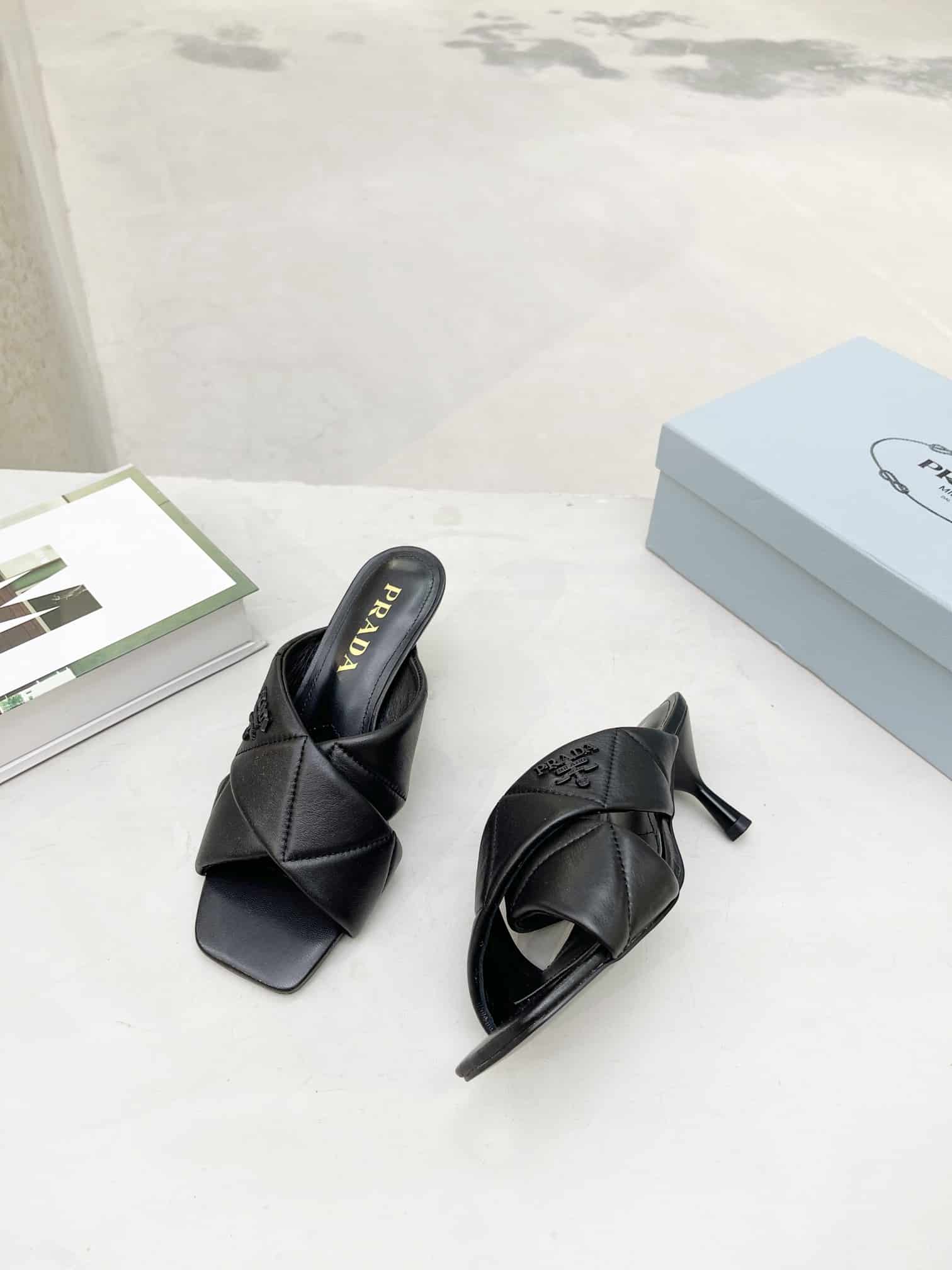 PRADA BLACK QUILTED LEATHER MULE