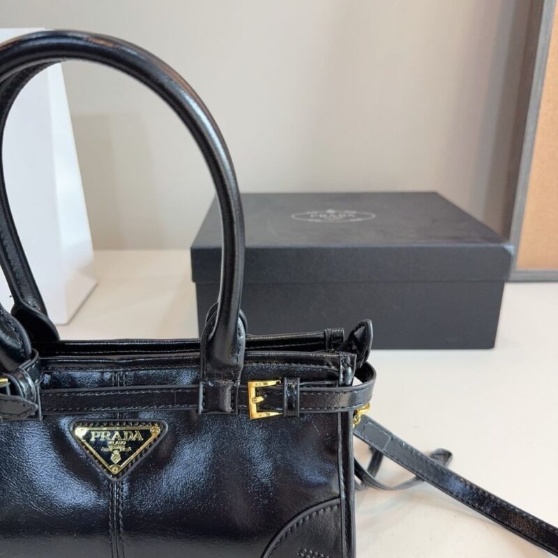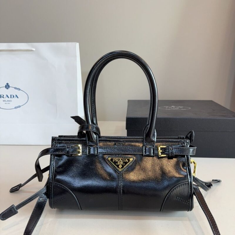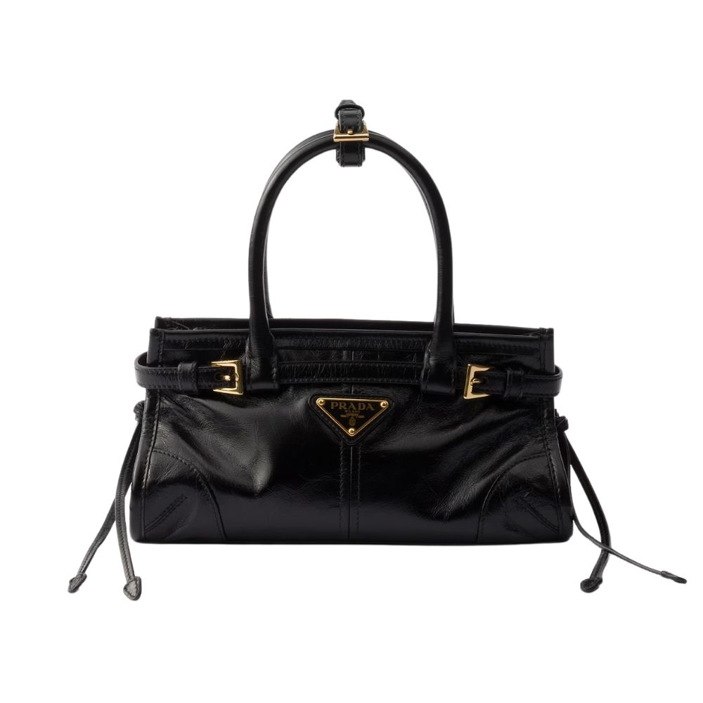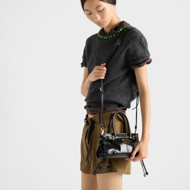 A symbol of innovation, unconventional spirit and a timeless attitude, the Bonnie bag expresses Prada’s dialogue with modernity. The style is presented in a versatile and compact mini format enriched with distinctive metal buckles and laces on the sides. Soft leather with a liquid, glossy finish gives the design unmistakable style.