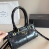 A symbol of innovation, unconventional spirit and a timeless attitude, the Bonnie bag expresses Prada’s dialogue with modernity. The style is presented in a versatile and compact mini format enriched with distinctive metal buckles and laces on the sides. Soft leather with a liquid, glossy finish gives the design unmistakable style.