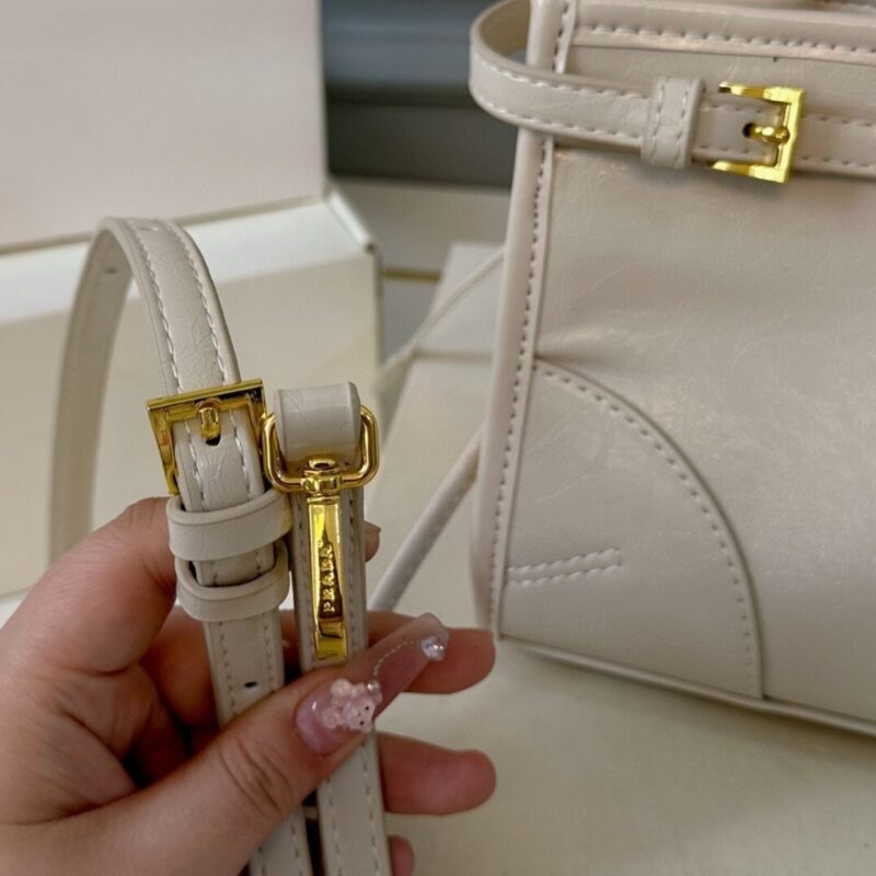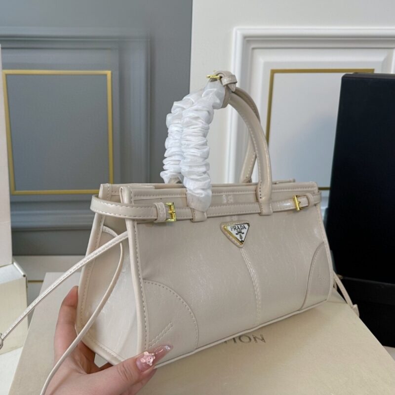 Prada Bonnie Medium Leather Handbag White 1BA426 2CYR F0PG7 V MOO / 32cm / 12.6 inches