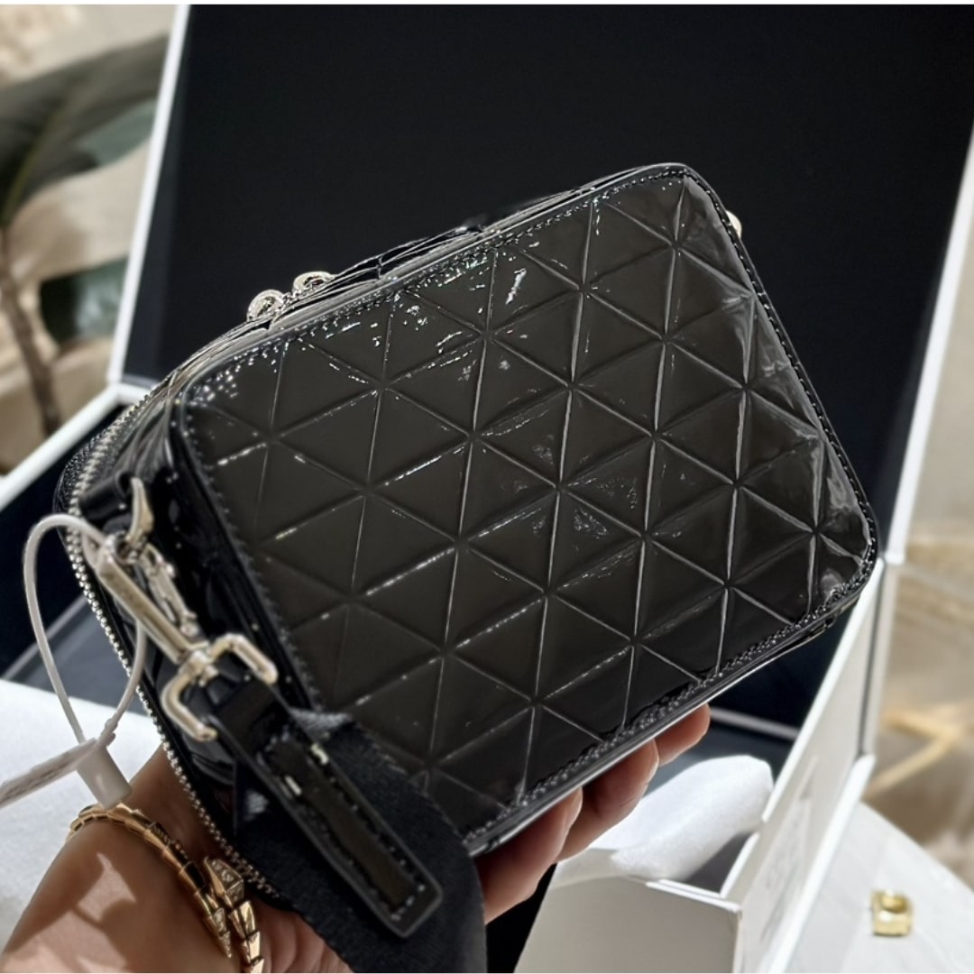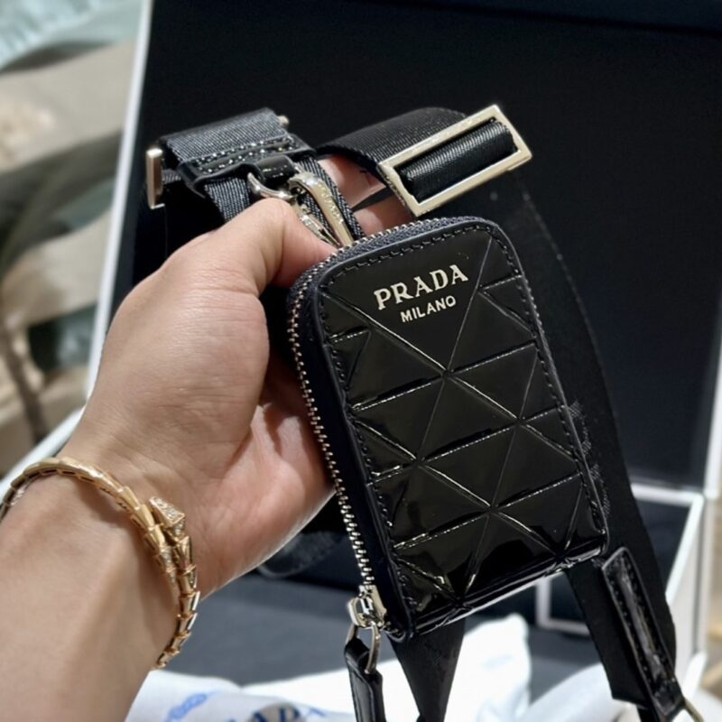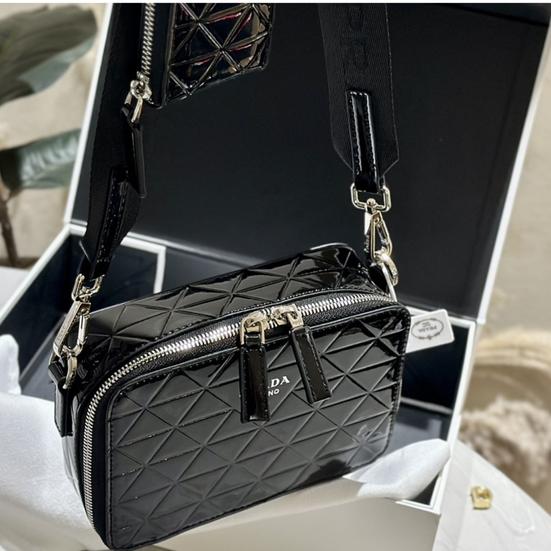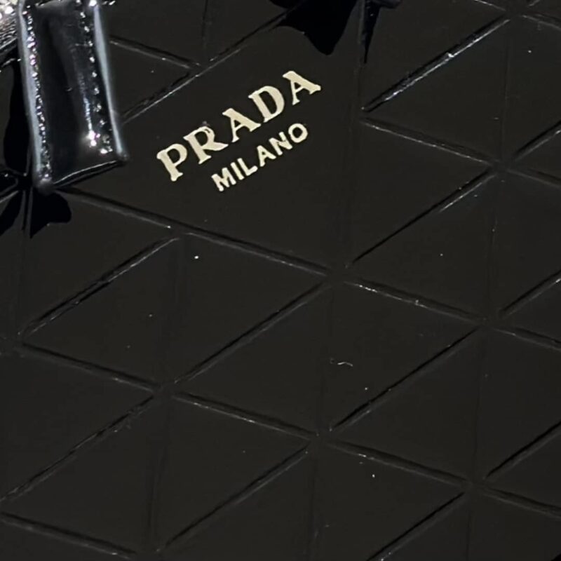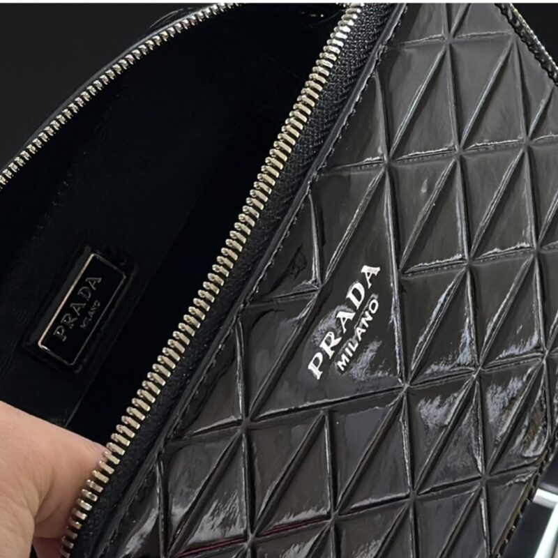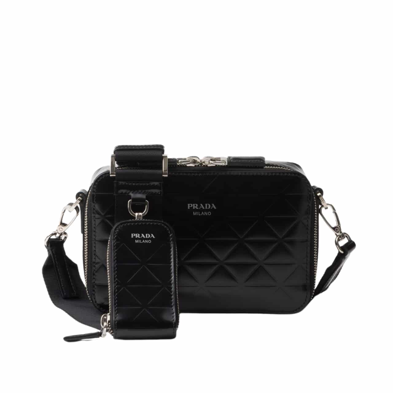 PRADA BRIQUE BRUSHED LEATHER BAG WITH TRIANGLE MOTIF BLACK 18CM 2VH070 ZO6 F0002 V ZMT