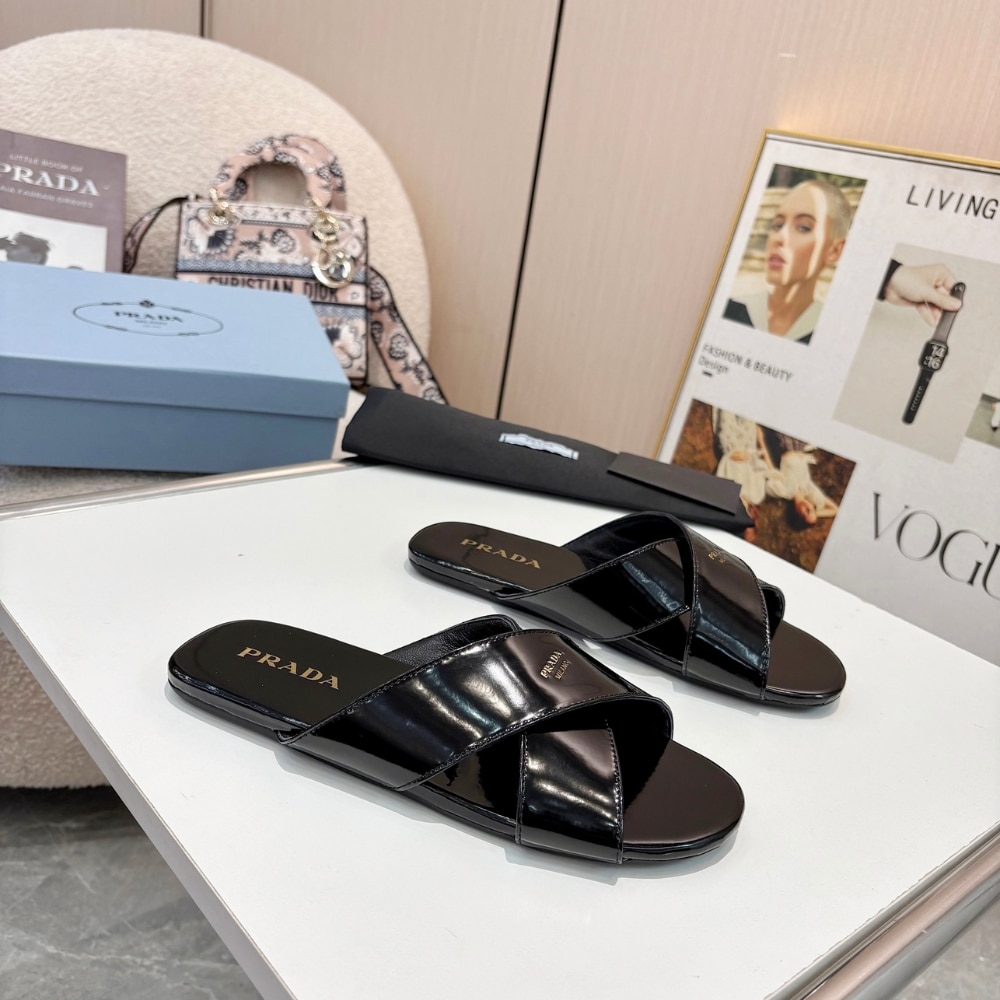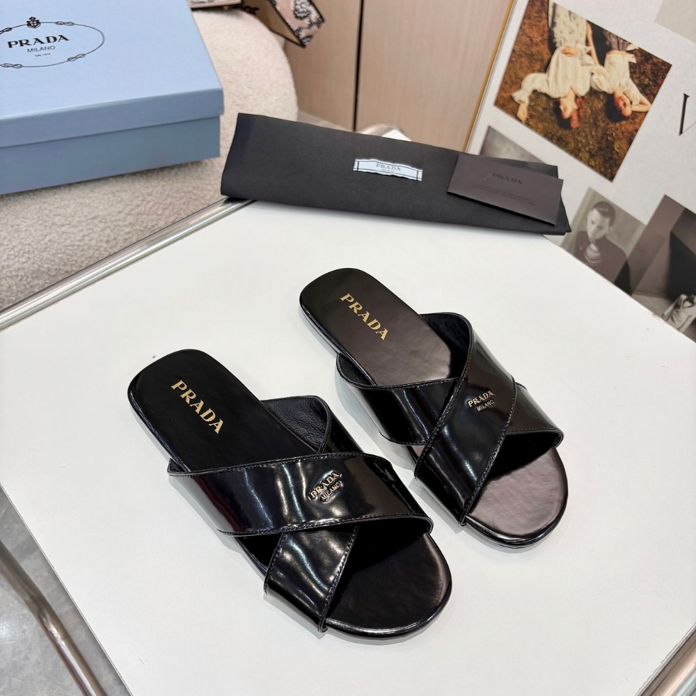 PRADA BRUSHED LEATHER SLIDES BLACK 1XX768 055 F0002 F 005