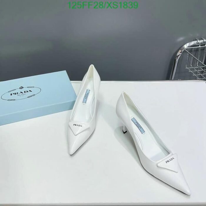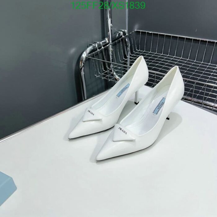 PRADA CLEAVAGE NERO LEATHER PUMPS WHITE