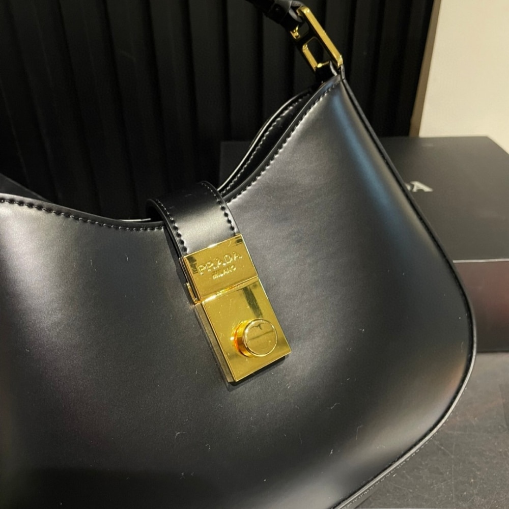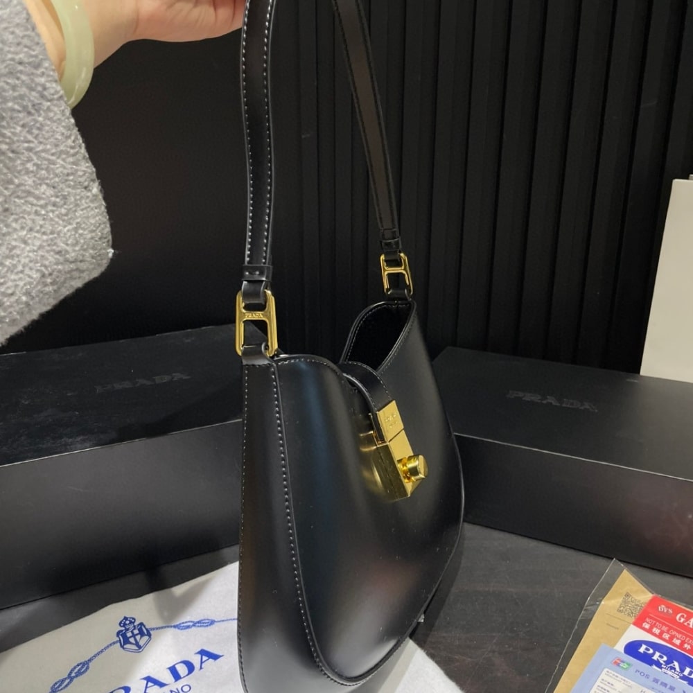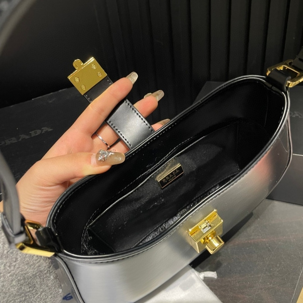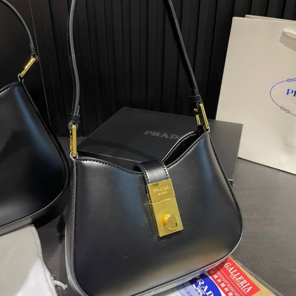 PRADA CLEO BRUSHED LEATHER SHOULDER BAG WITH CLASP CLOSURE BLACK 26CM 1BC169 ZO6 F0632 V MEO