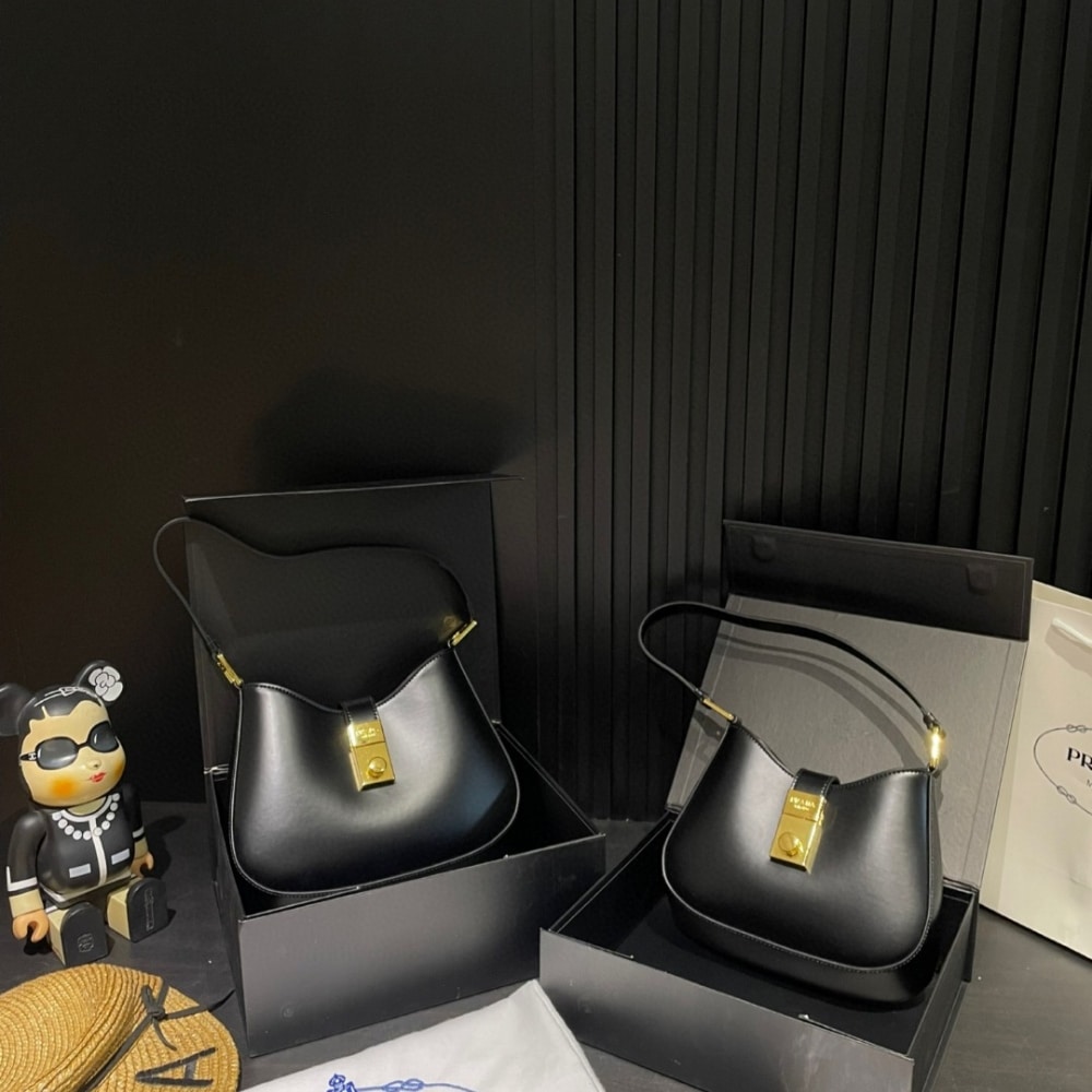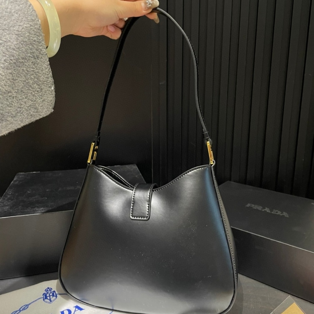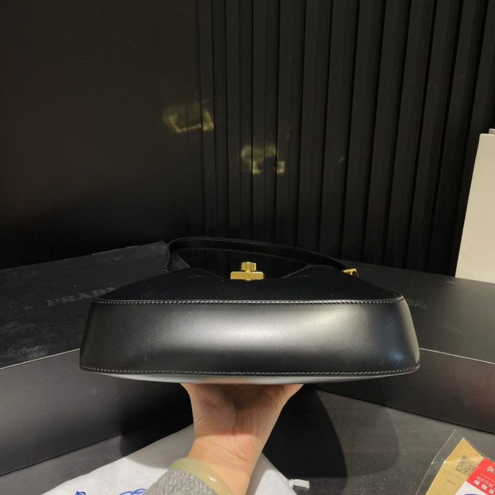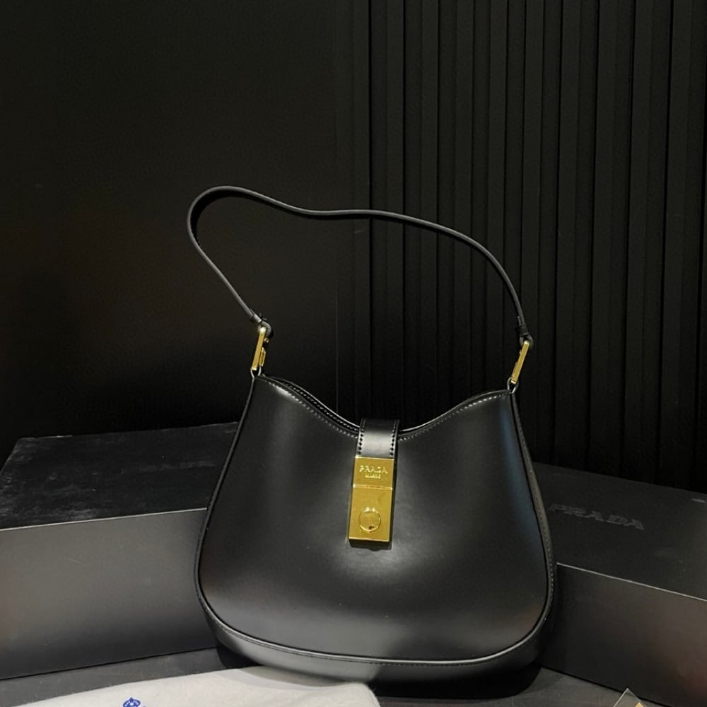 PRADA CLEO BRUSHED LEATHER SHOULDER BAG WITH CLASP CLOSURE BLACK 26CM 1BC169 ZO6 F0632 V MEO