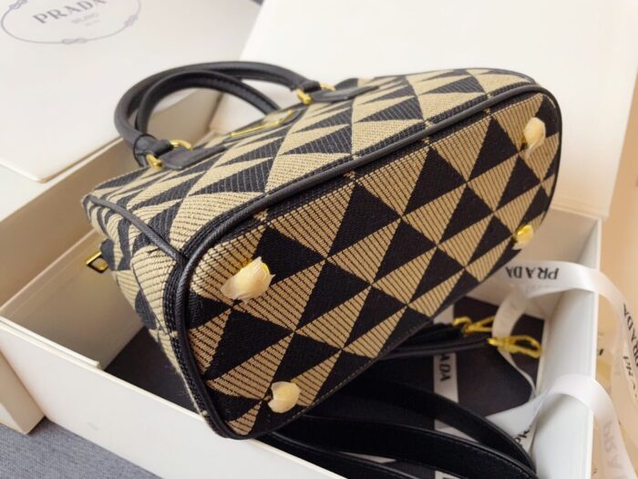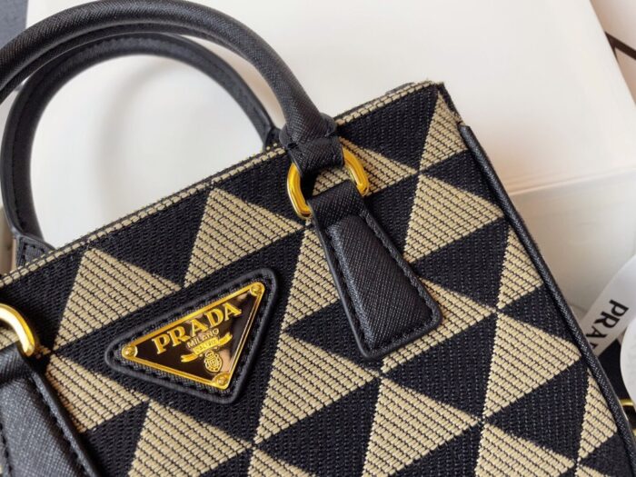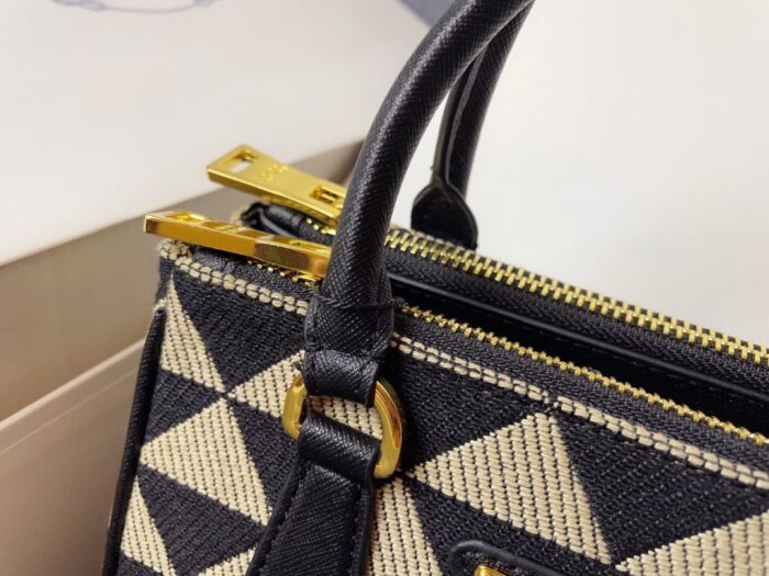 Prada Galleria Mini Embroidered Jacquard Bag Black And Beige 1BA906 2FKL F0Y30 V XOM / 20 cm / 7.9 inches