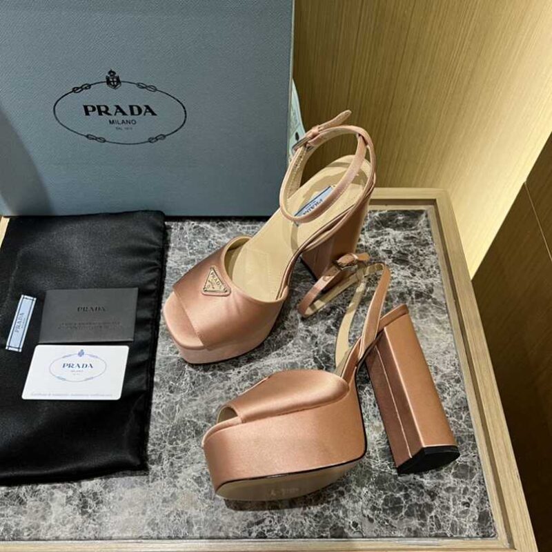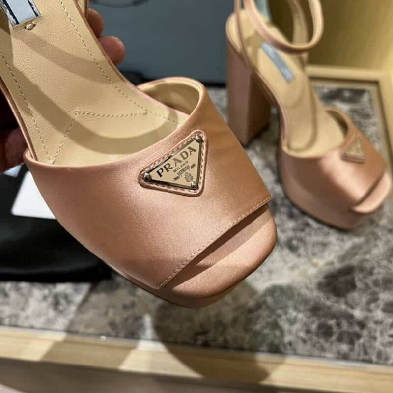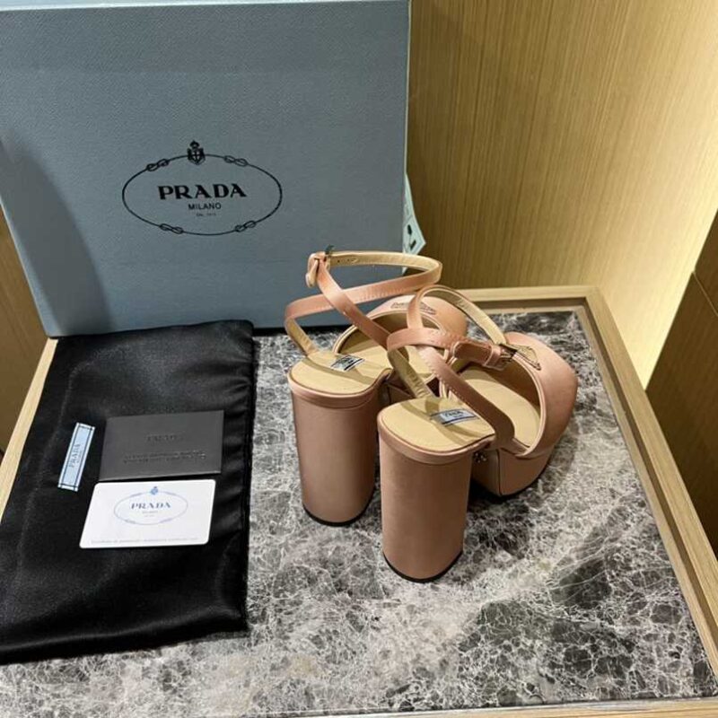PRADA HIGH HEELED SATIN SANDALS BEIGE