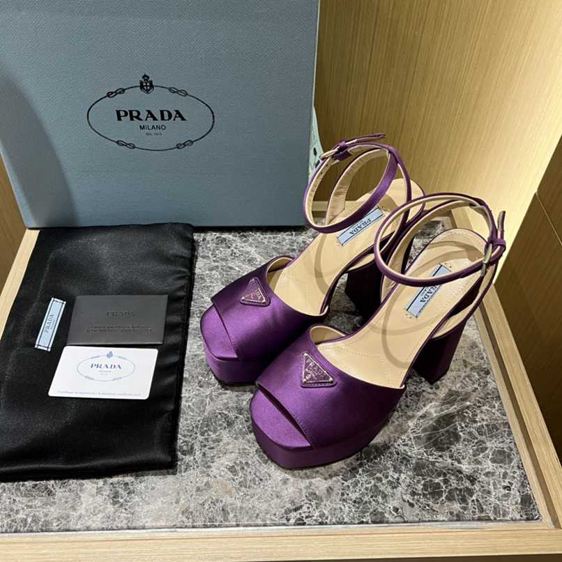 PRADA HIGH HEELED SATIN SANDALS VIOLET 1XP48B 049 F0030 F 135