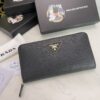 Prada Large Saffiano Triangle Zip Around Long Wallet Black 19Cm 1Ml506 Qhh F0002