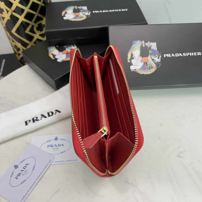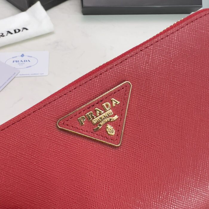 Prada Large Saffiano/19cm Triangle Zip Around Long Wallet Red 1ML506 QHH F068Z