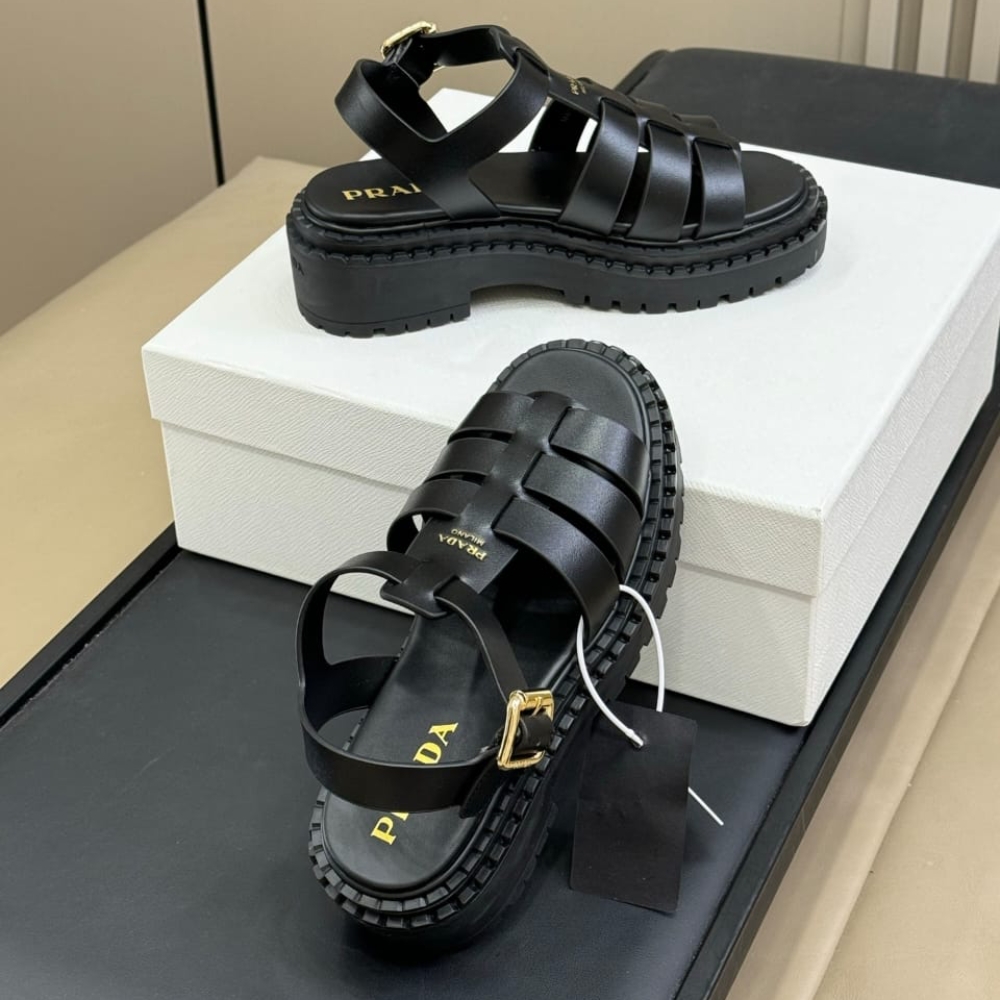 Replica 1:1 – Prada Leather Fisherman Sandals Black 1X923N 7V6 F0002 F 055