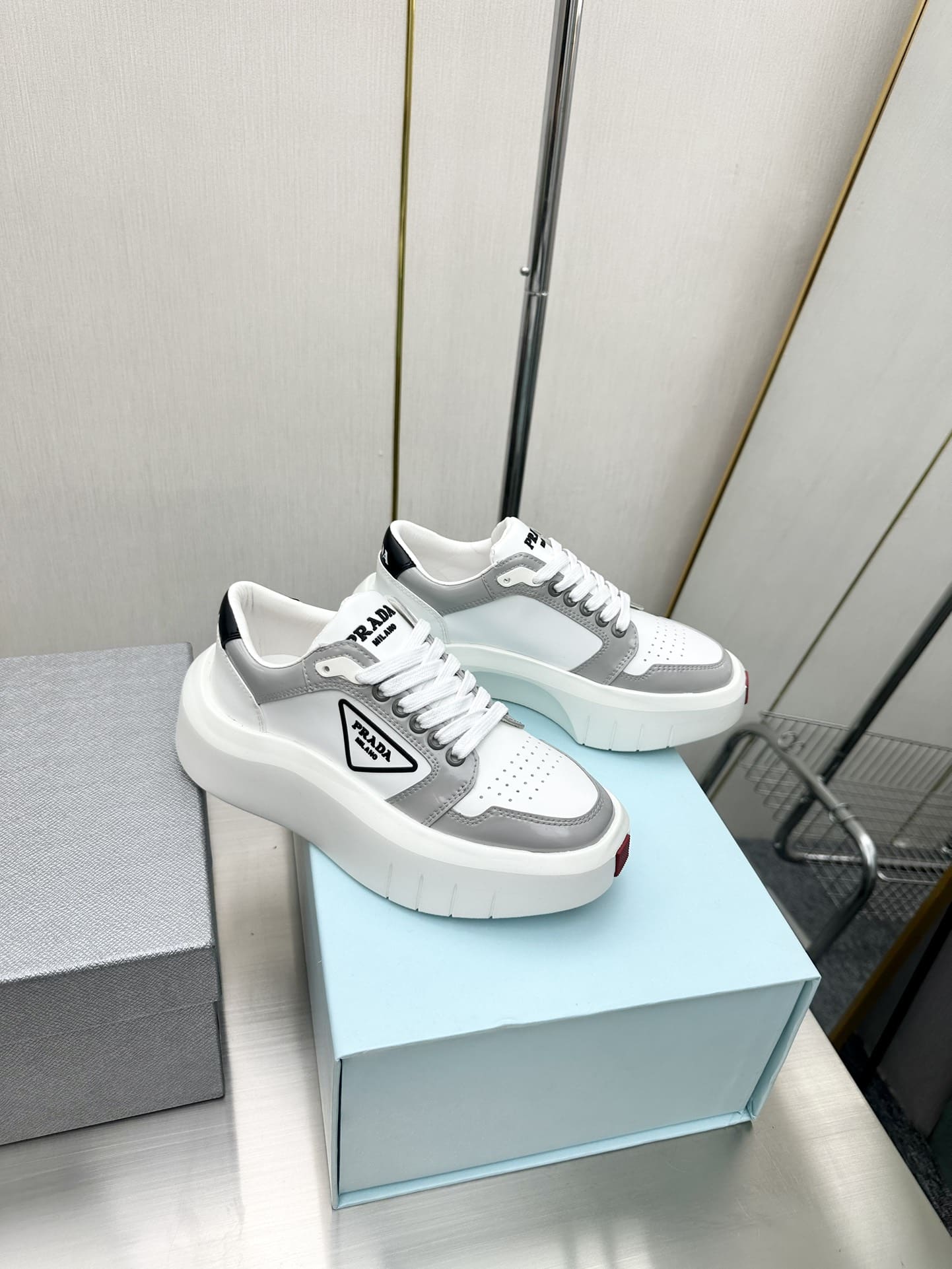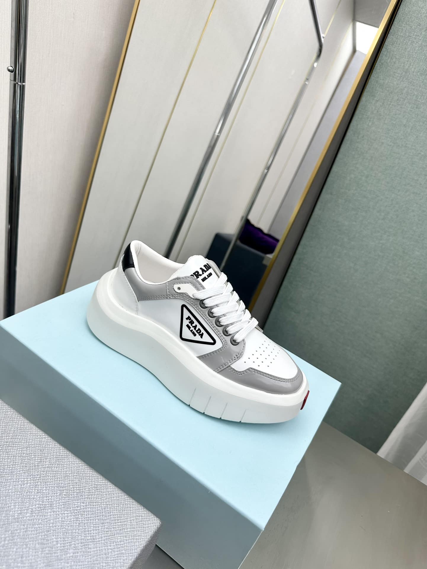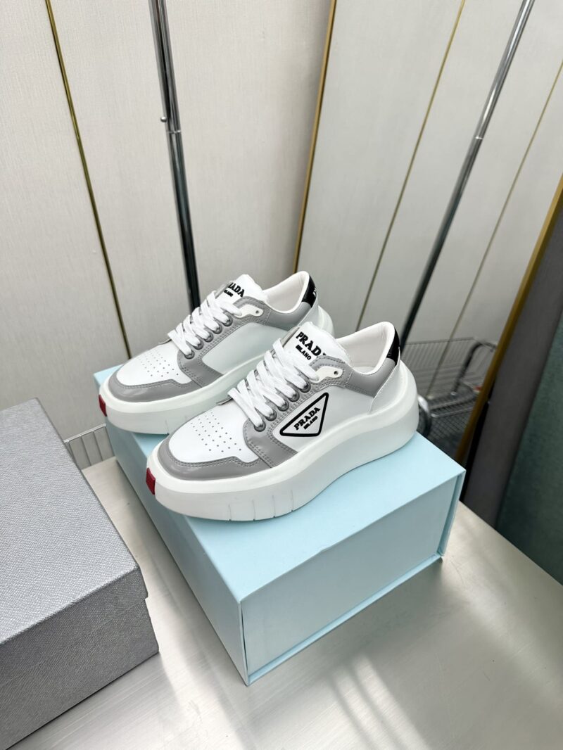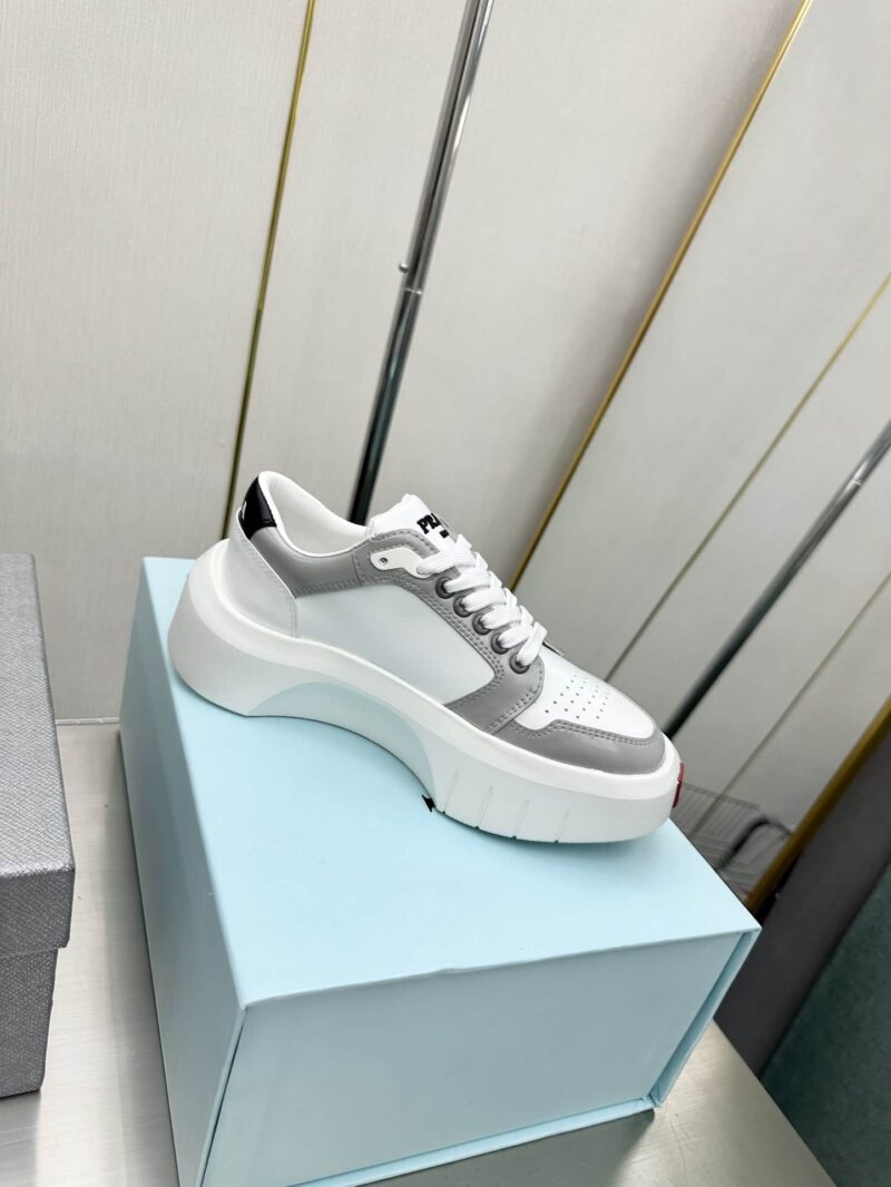 PRADA LEATHER PLATFORM SNEAKERS WHITE AND GREY