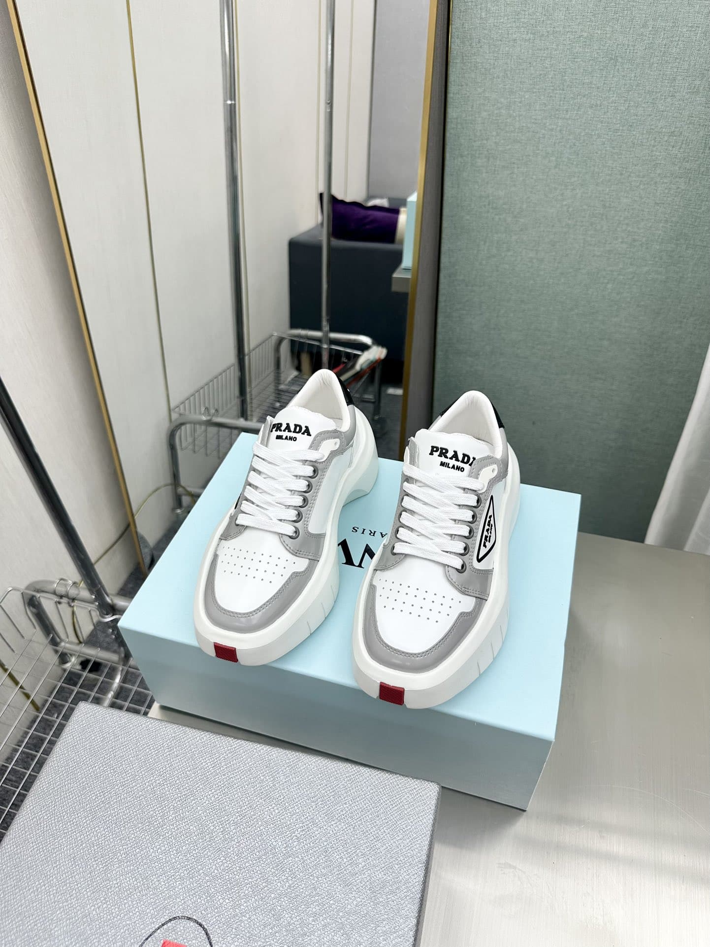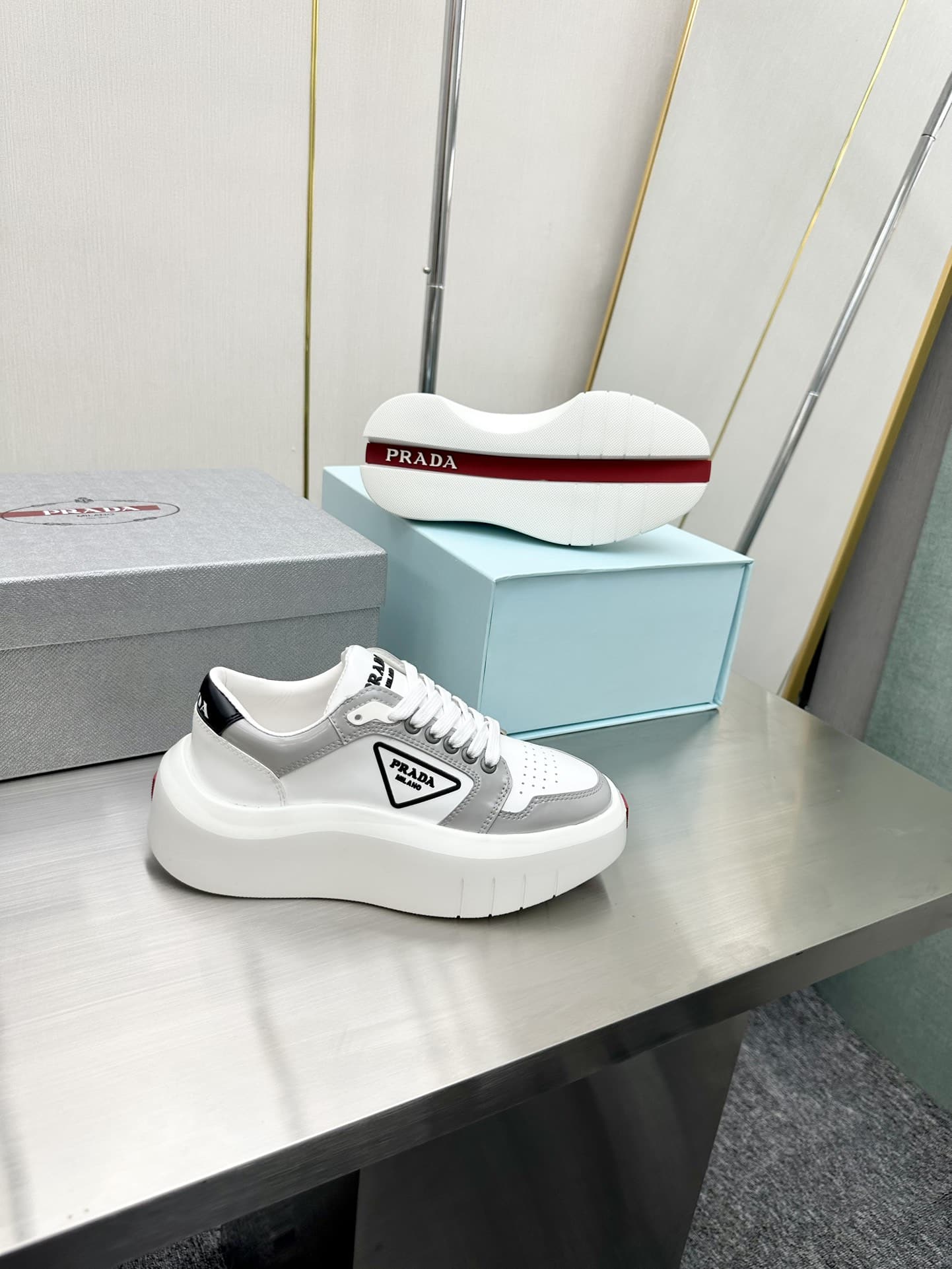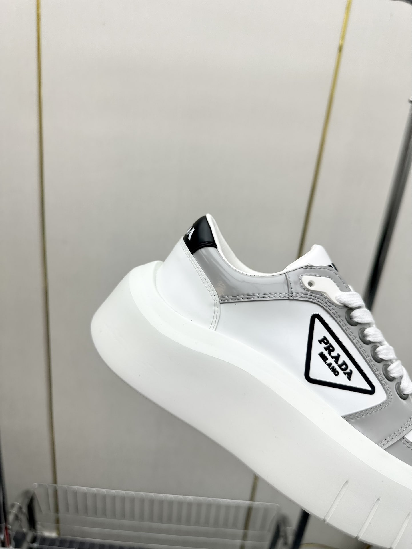PRADA LEATHER PLATFORM SNEAKERS WHITE AND GREY