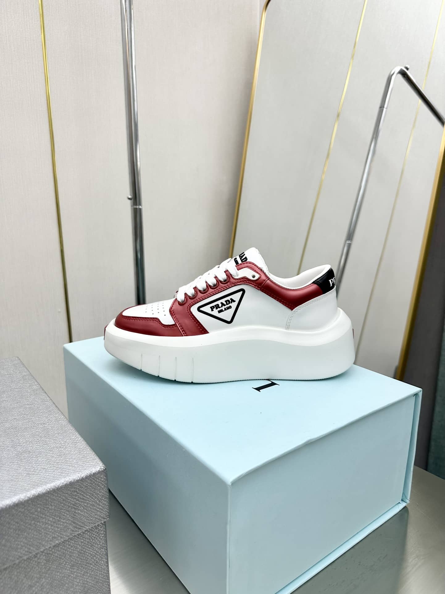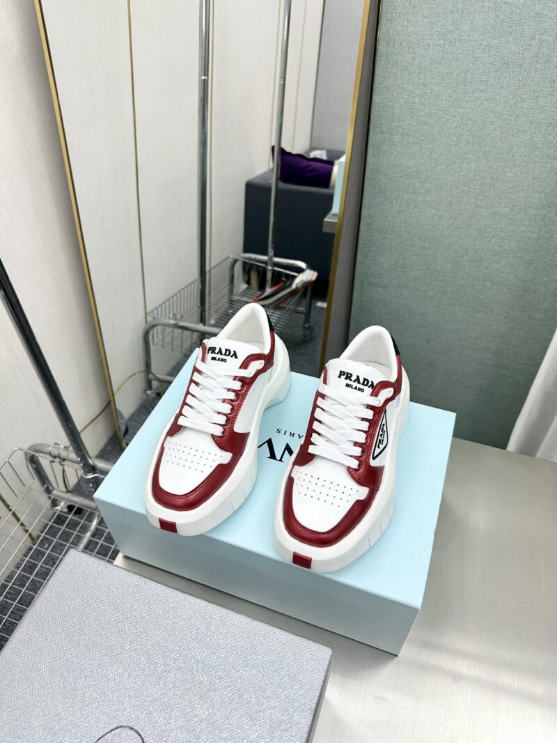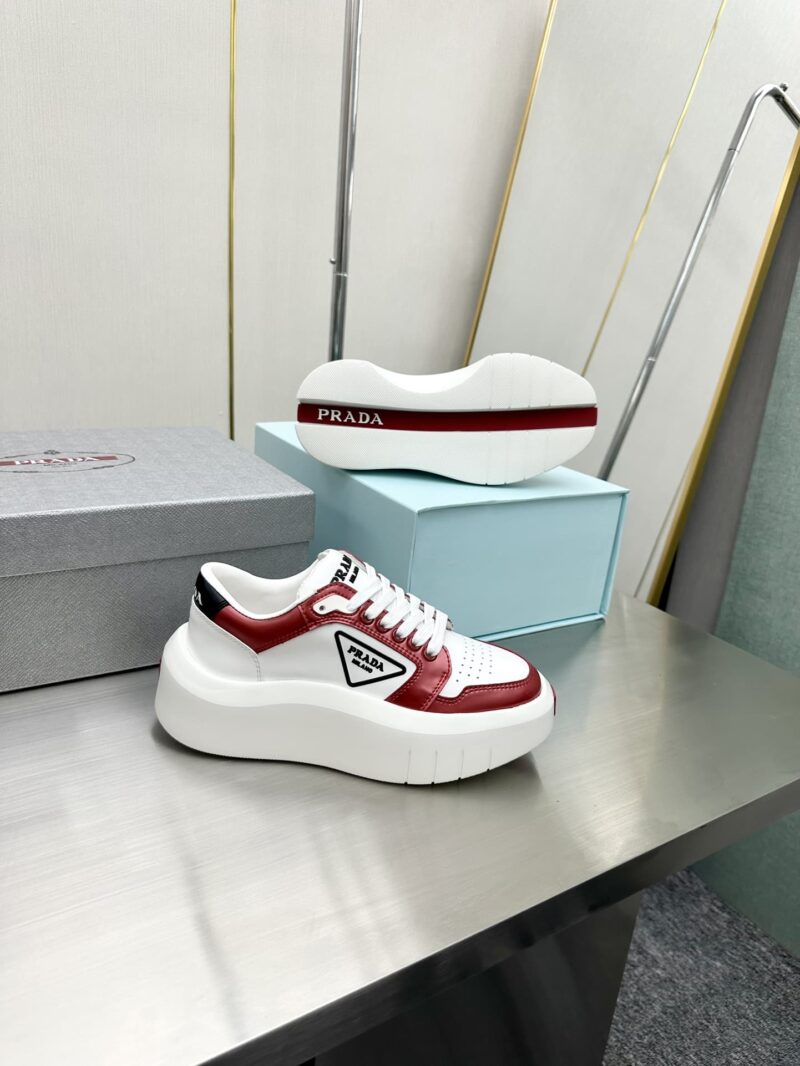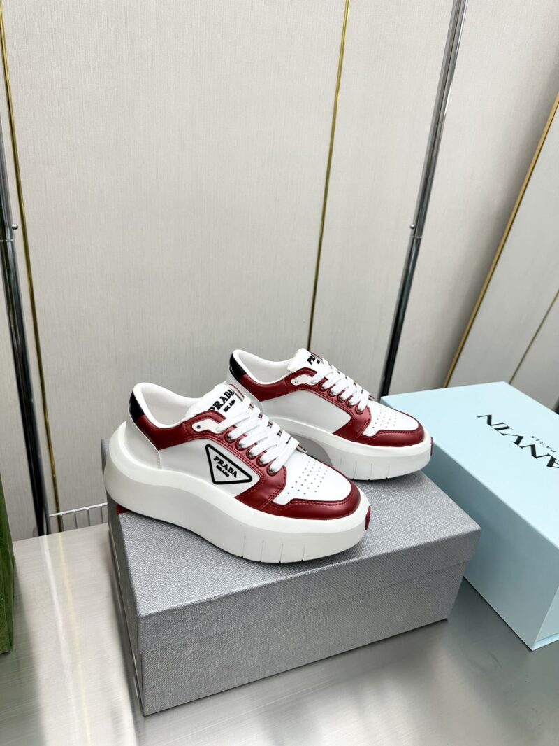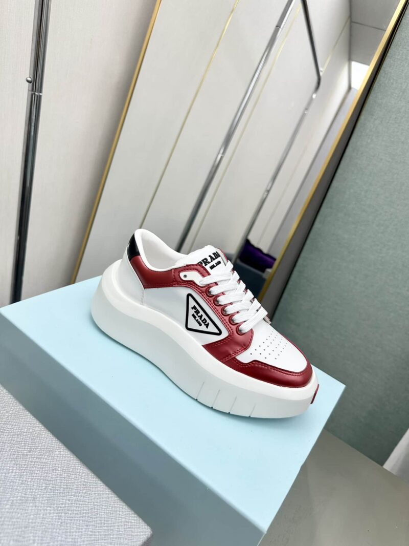 PRADA LEATHER PLATFORM SNEAKERS WHITE AND RED