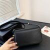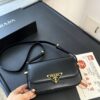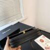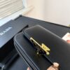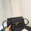 - Logo engraved on the enameled metal triangle clasp on the flap