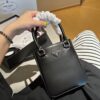 Prada Logo Embellished Leather Cross Body Bag Black 15Cm