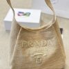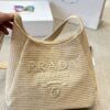Prada //Logo Embossed Raffia Shoulder Bag// Beige// 33cm