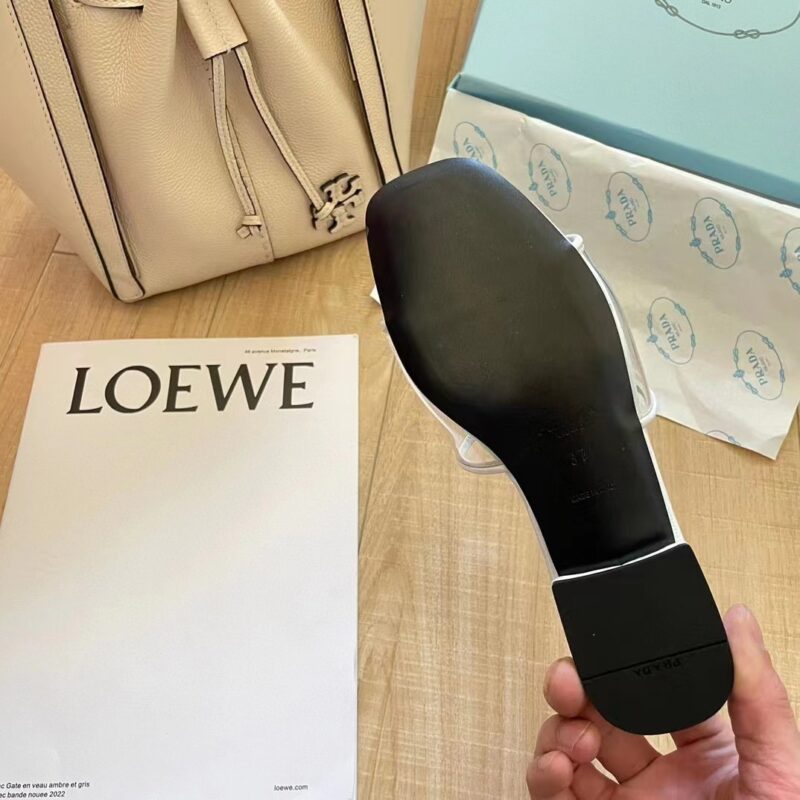 PRADA LOGO PLAQUE SLIP ON WHITE