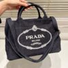 Prada Logo Printed Denim Tote Bag Black 26Cm