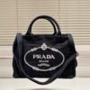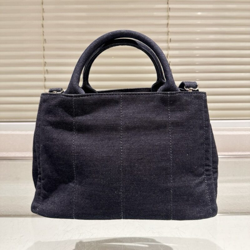 Prada Logo Printed Denim Tote Bag Black 26Cm / 10.2 inches