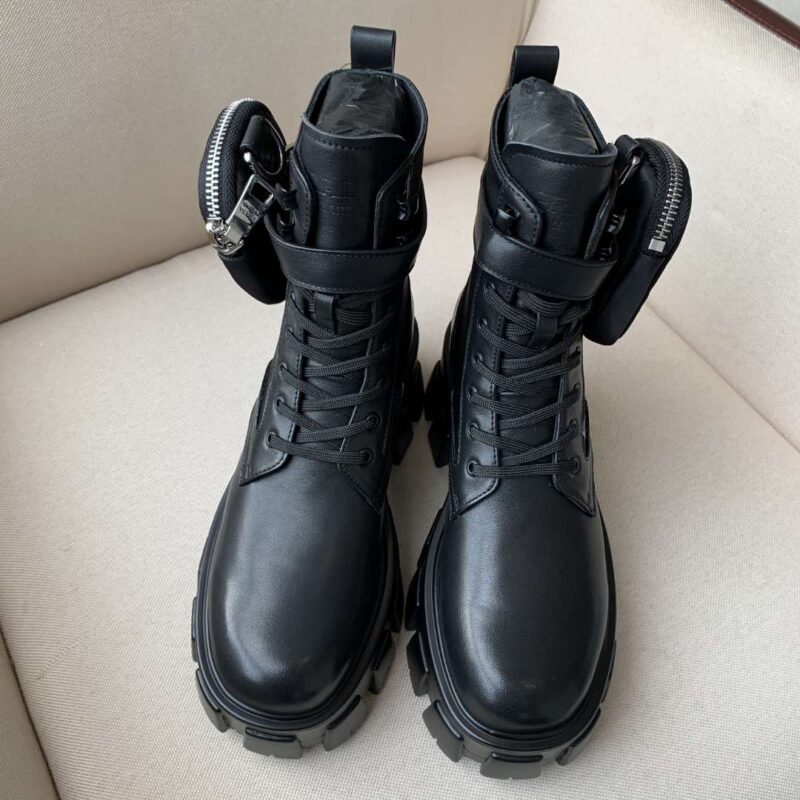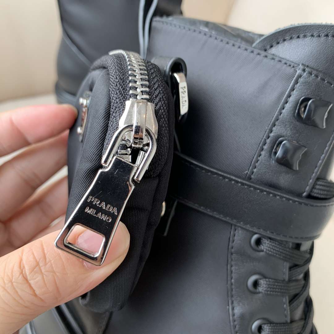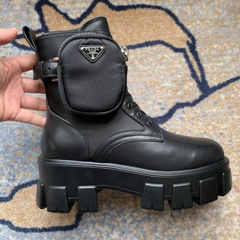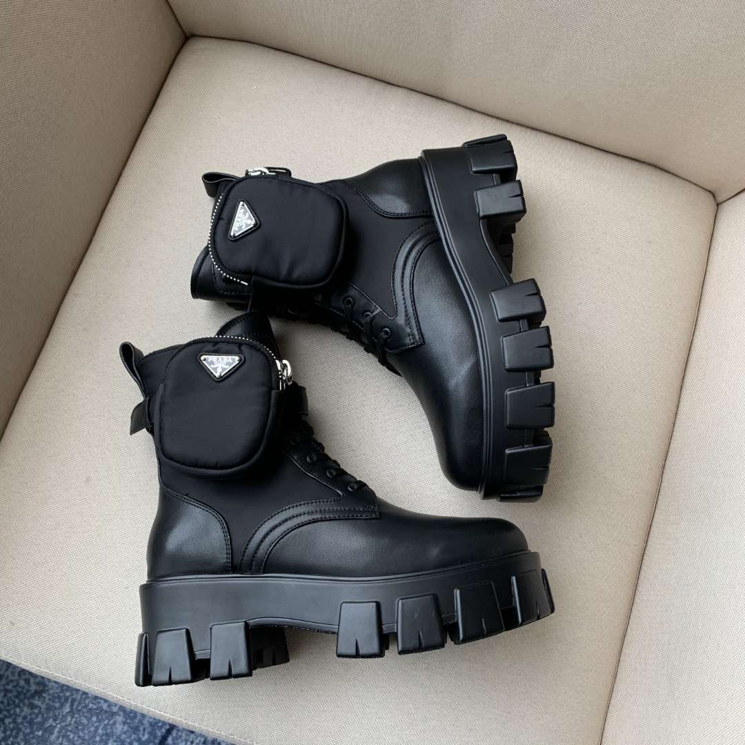 PRADA MONOLITH BRUSHED LEATHER AND RE NYLON WITH POUCH BOOTS BLACK 2UE007 3LFR F0002 F D002