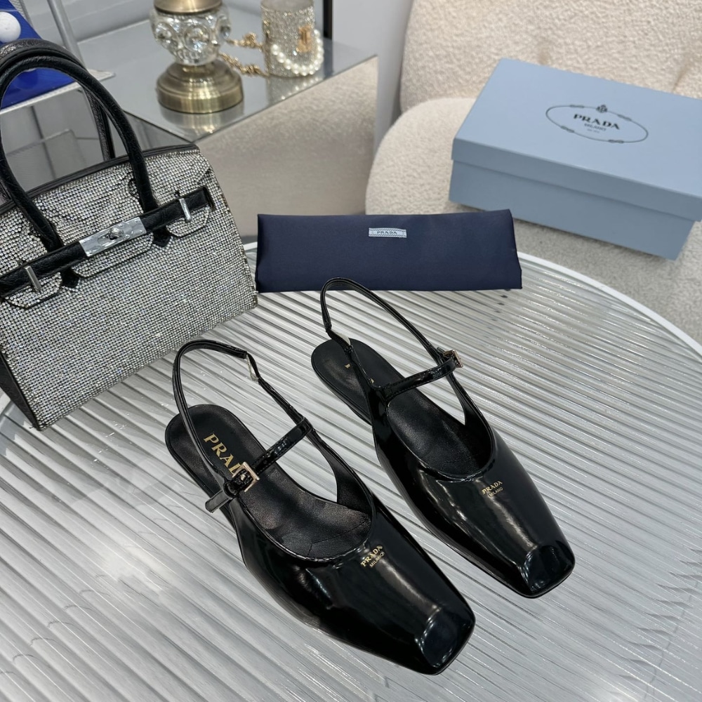 PRADA PATENT LEATHER SLINGBACK BALLERINAS BLACK 1F828N 069 F0002 F 015