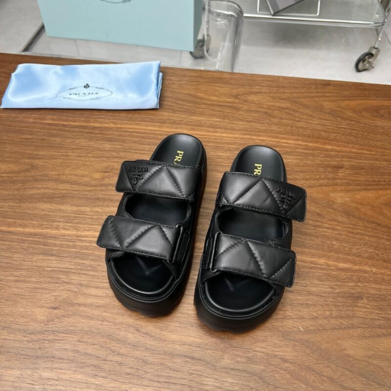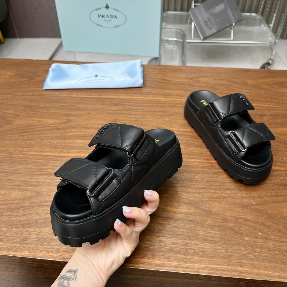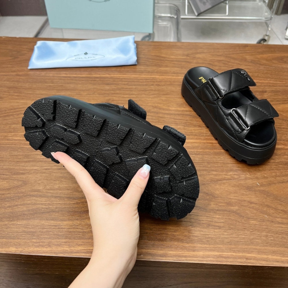 PRADA QUILTED LEATHER PLATFORM SANDALS BLACK