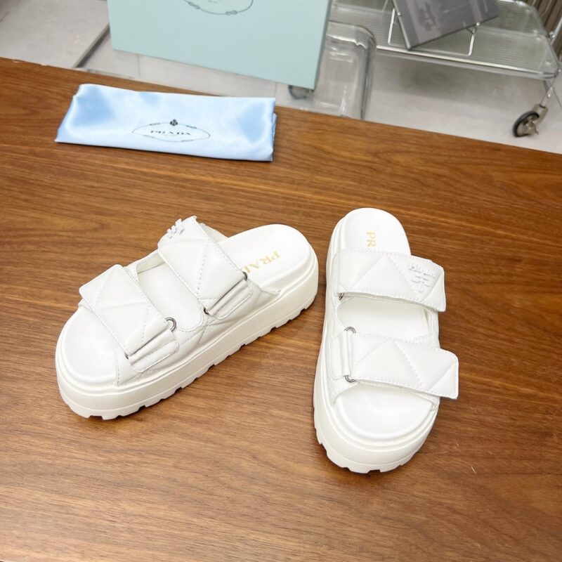PRADA QUILTED LEATHER PLATFORM SANDALS WHITE