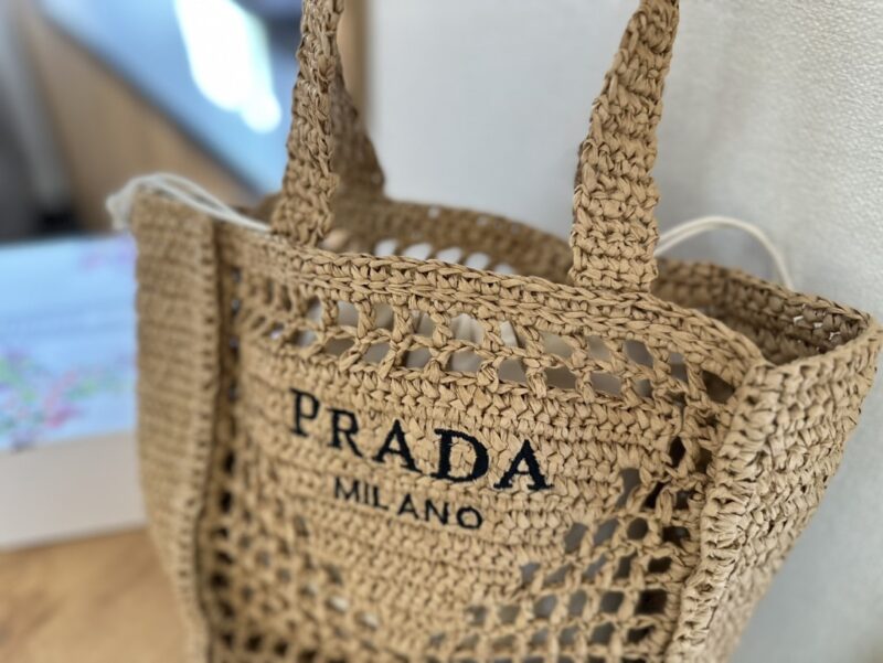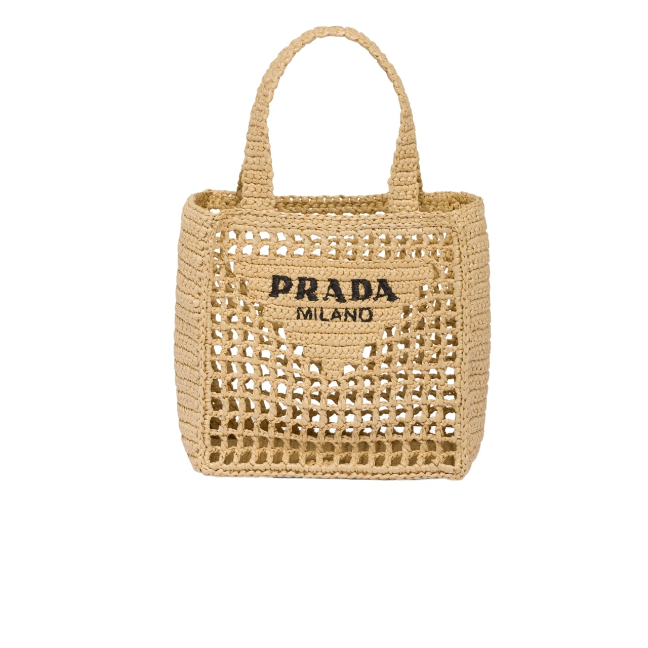 Prada//Raffia Grass Small Crochet Tote Bag//Natural//22cm//1BG444 2A2T F0018 V OOO