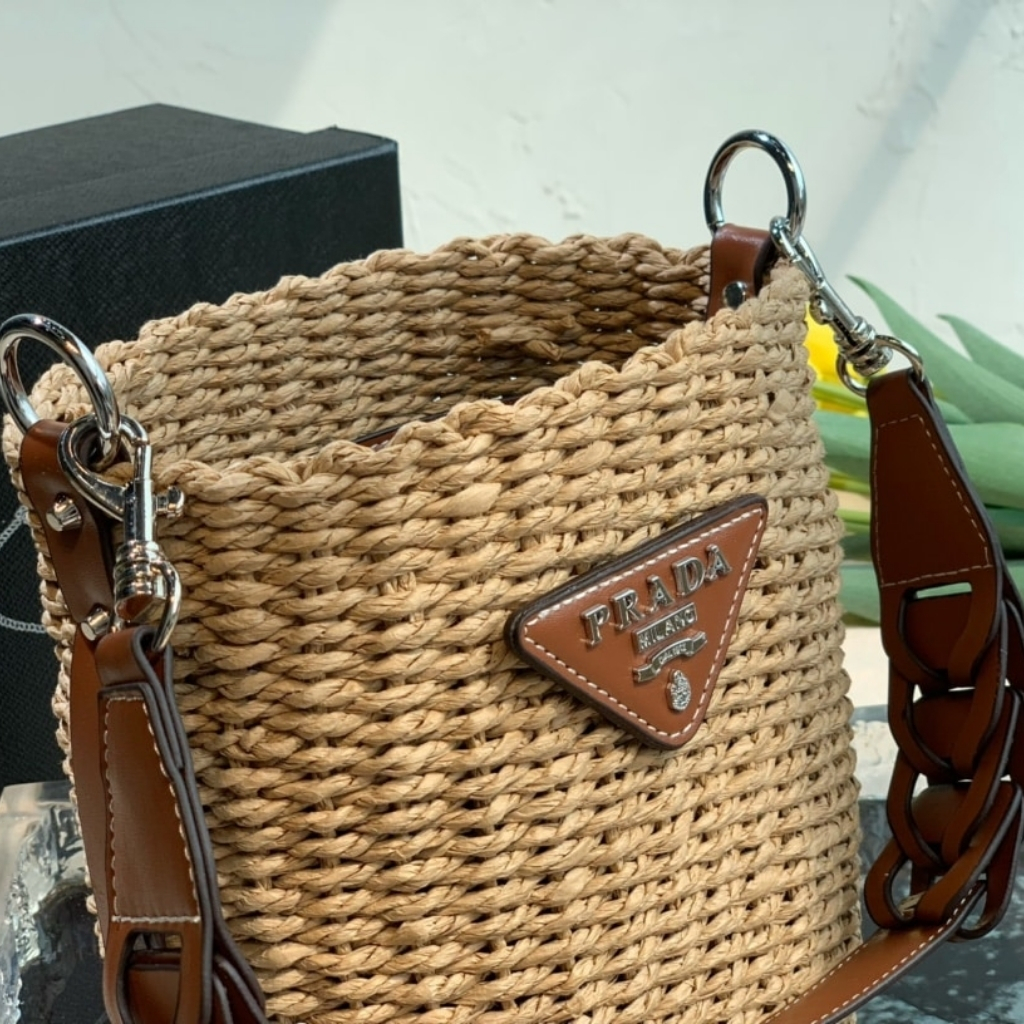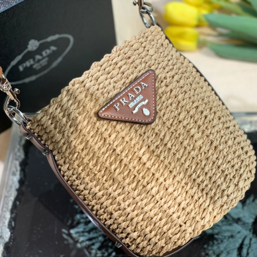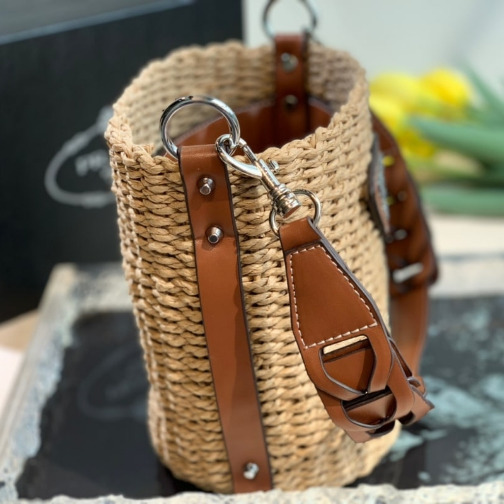 1:1 Replica Bag – Prada Raffia Woven Bucket Bag Natural 21cm