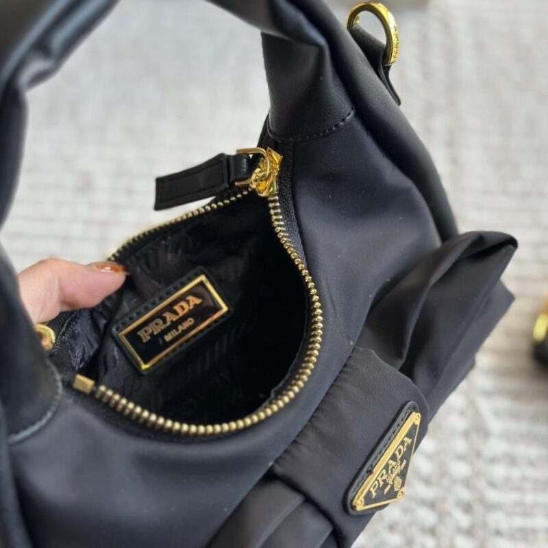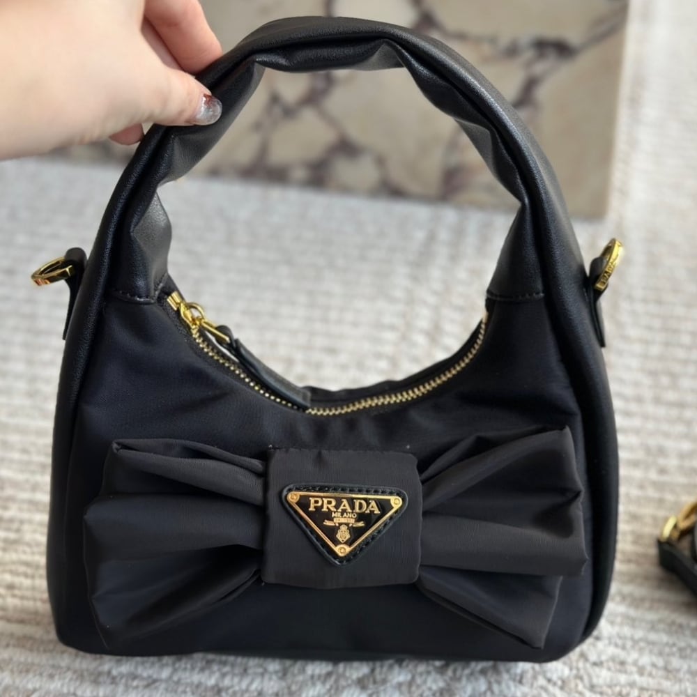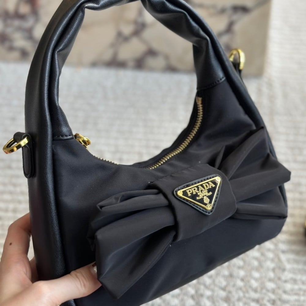 Prada Re Nylon And Nappa Leather Mini Bag With Bow Black 1BC241 RP0C F0002 V OXO/ 20cm /7.9 inches