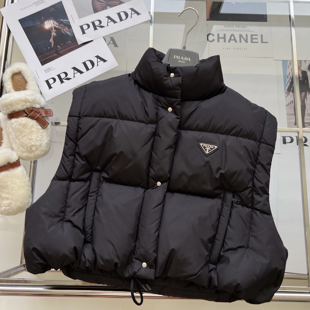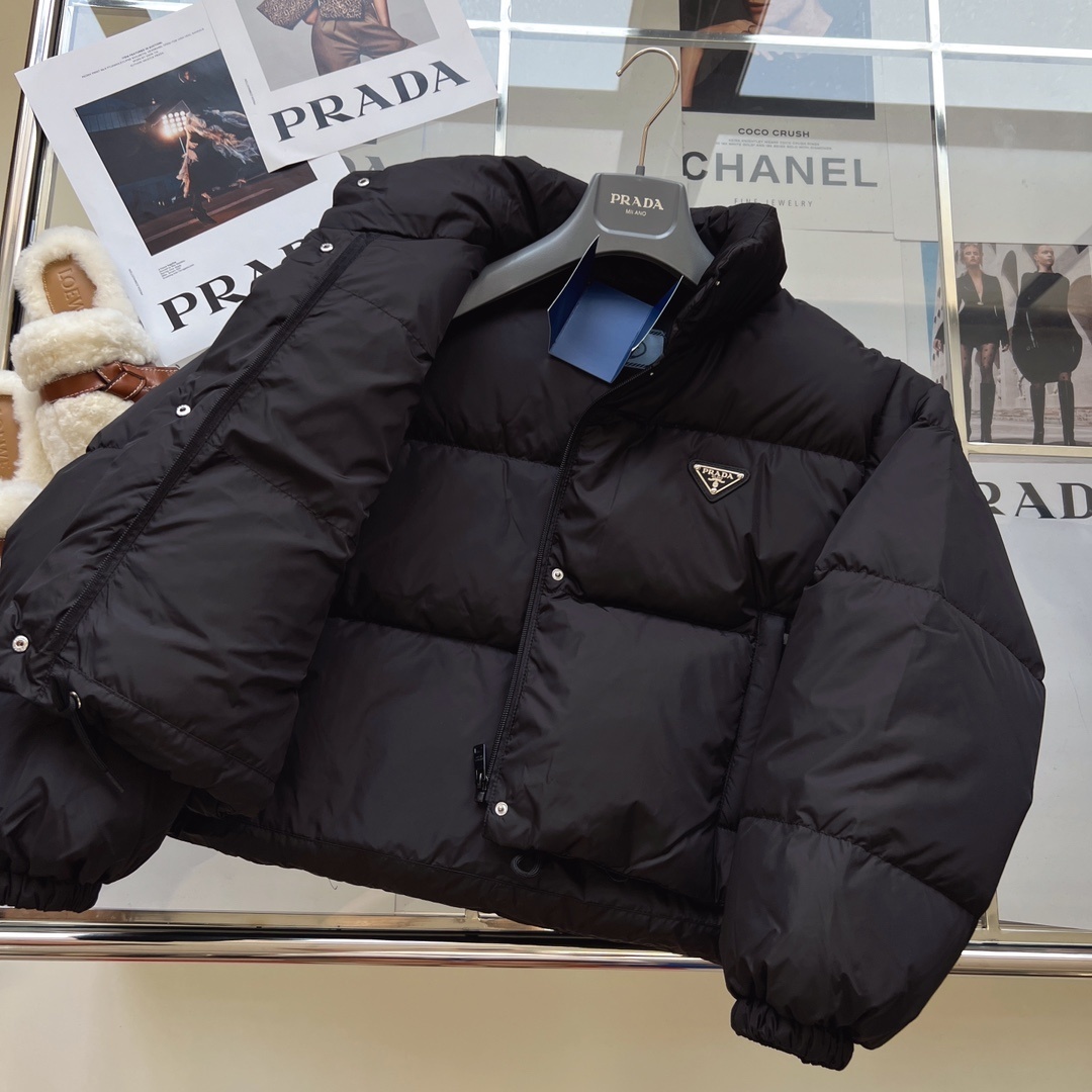 PRADA RE NYLON CROPPED CONVERTIBLE DOWN JACKET BLACK 291805 11A9 F0002 S 222