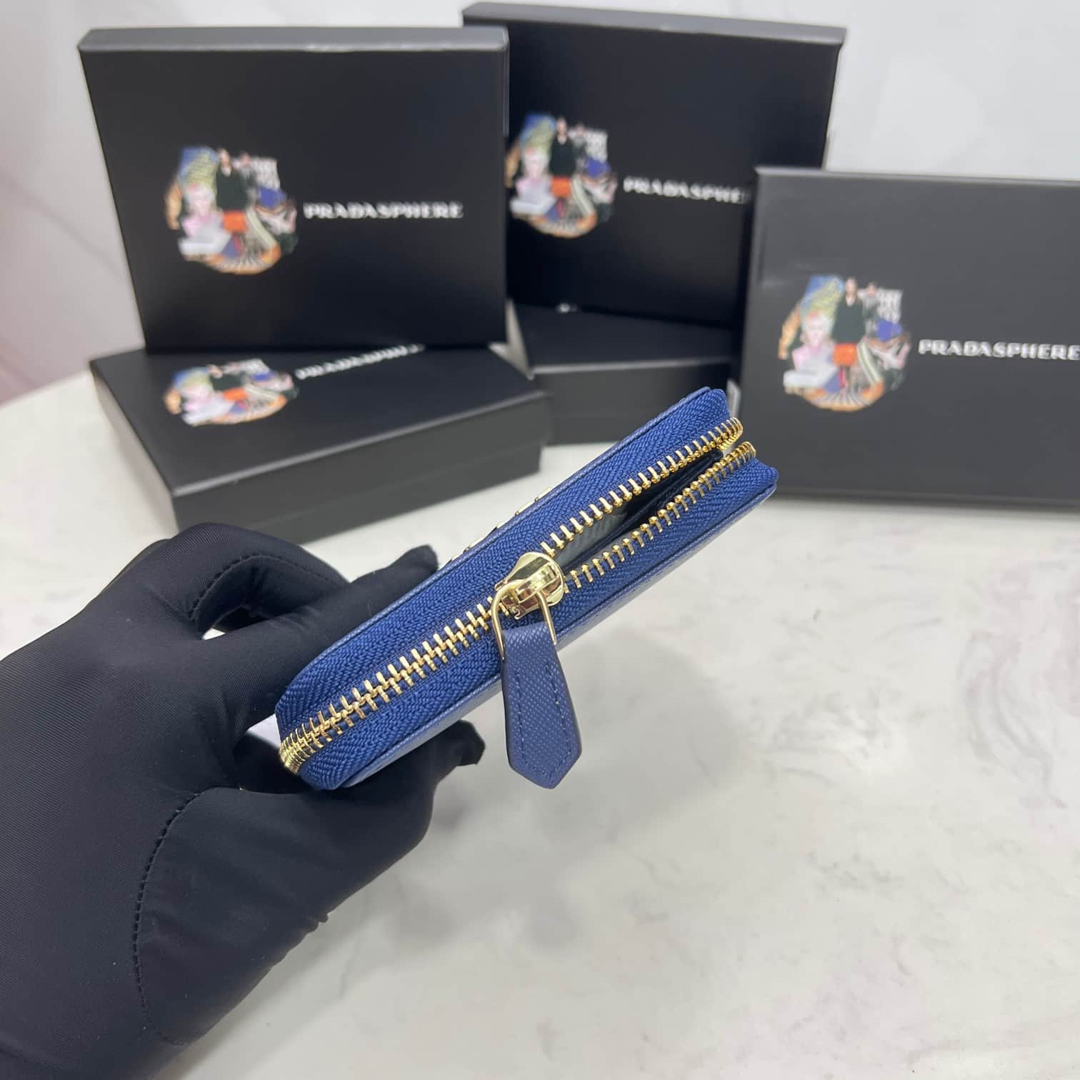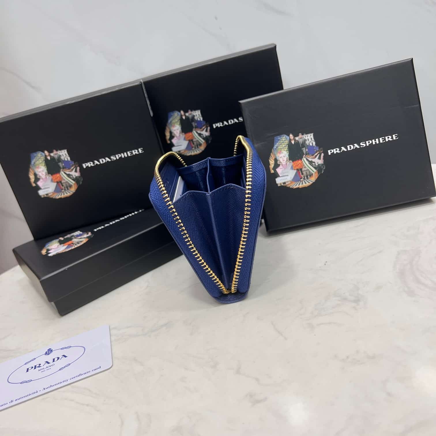 PRADA SAFFIANO LEATHER COIN PURSE BLUETTE WALLET 10CM 1MM268 QWA F0016