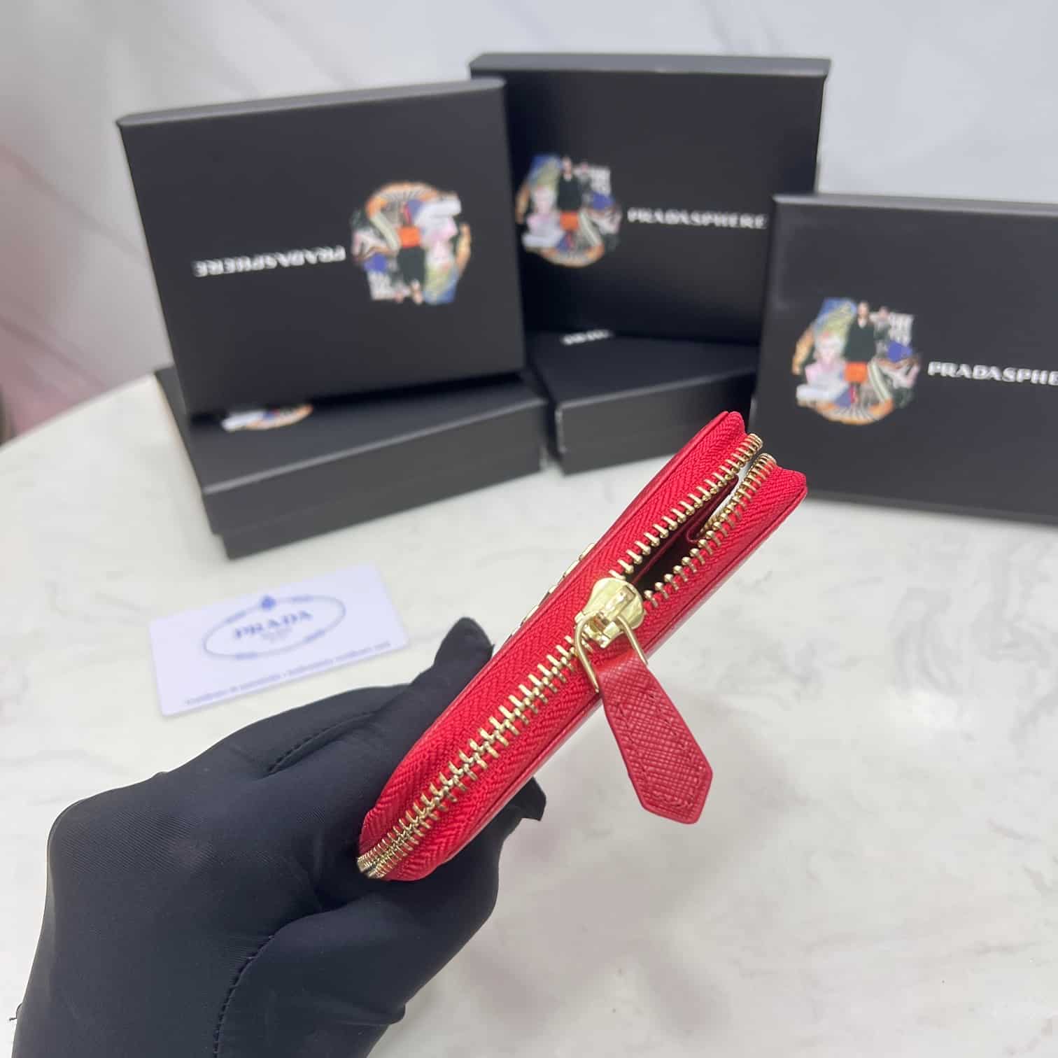 PRADA SAFFIANO LEATHER COIN PURSE FIERY RED WALLET 10CM 1MM268 QWA F068Z