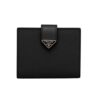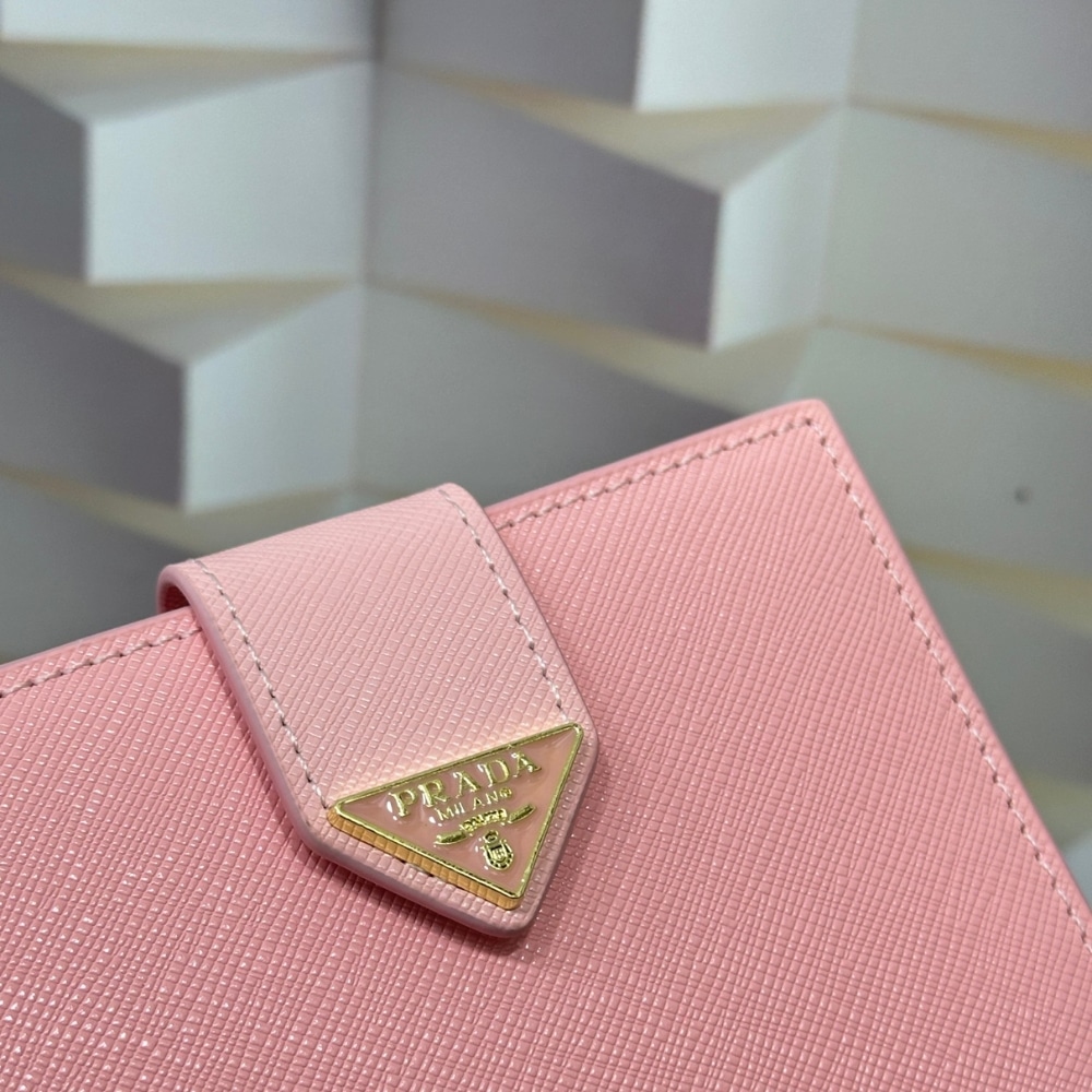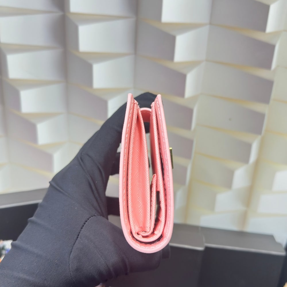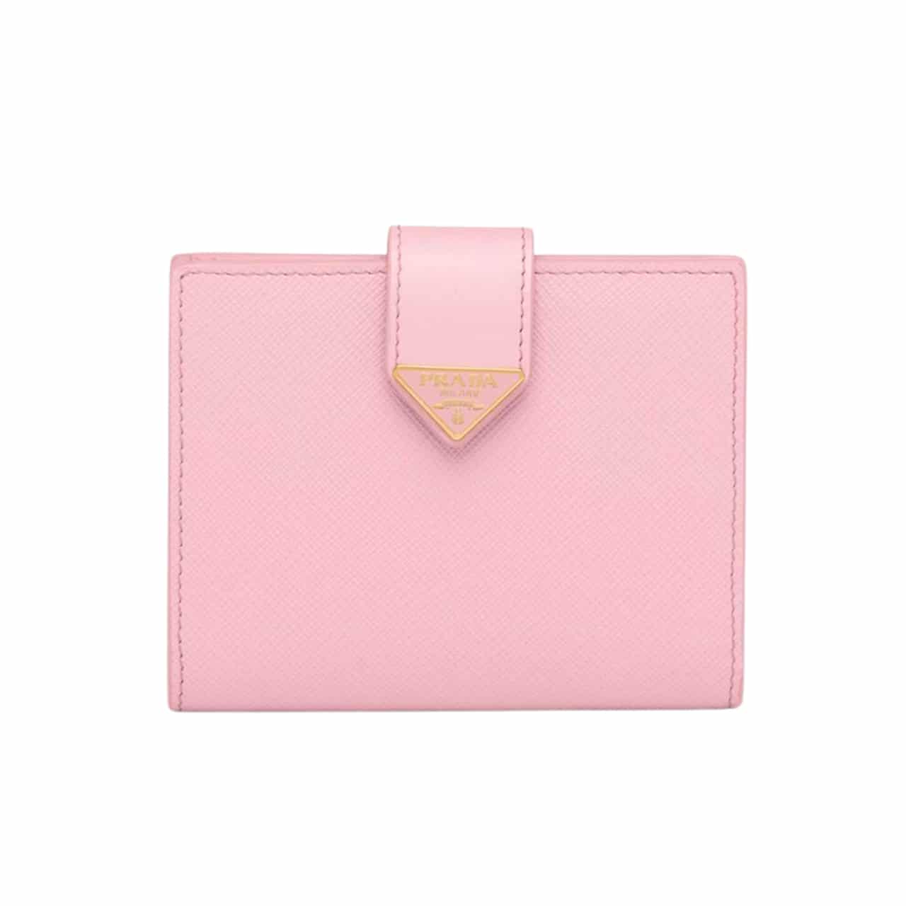 Prada Saffiano Leather Vertical Short Wallet Flap Triangle Logo Pink 10 cm / 3.5 inches