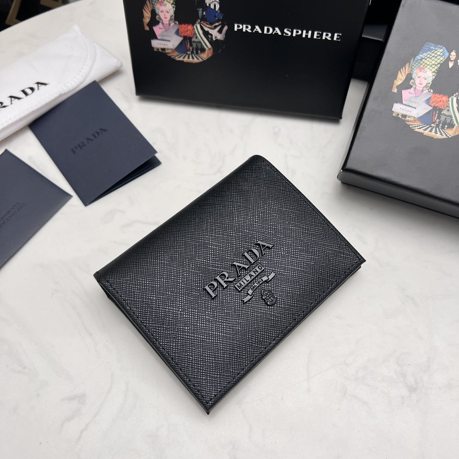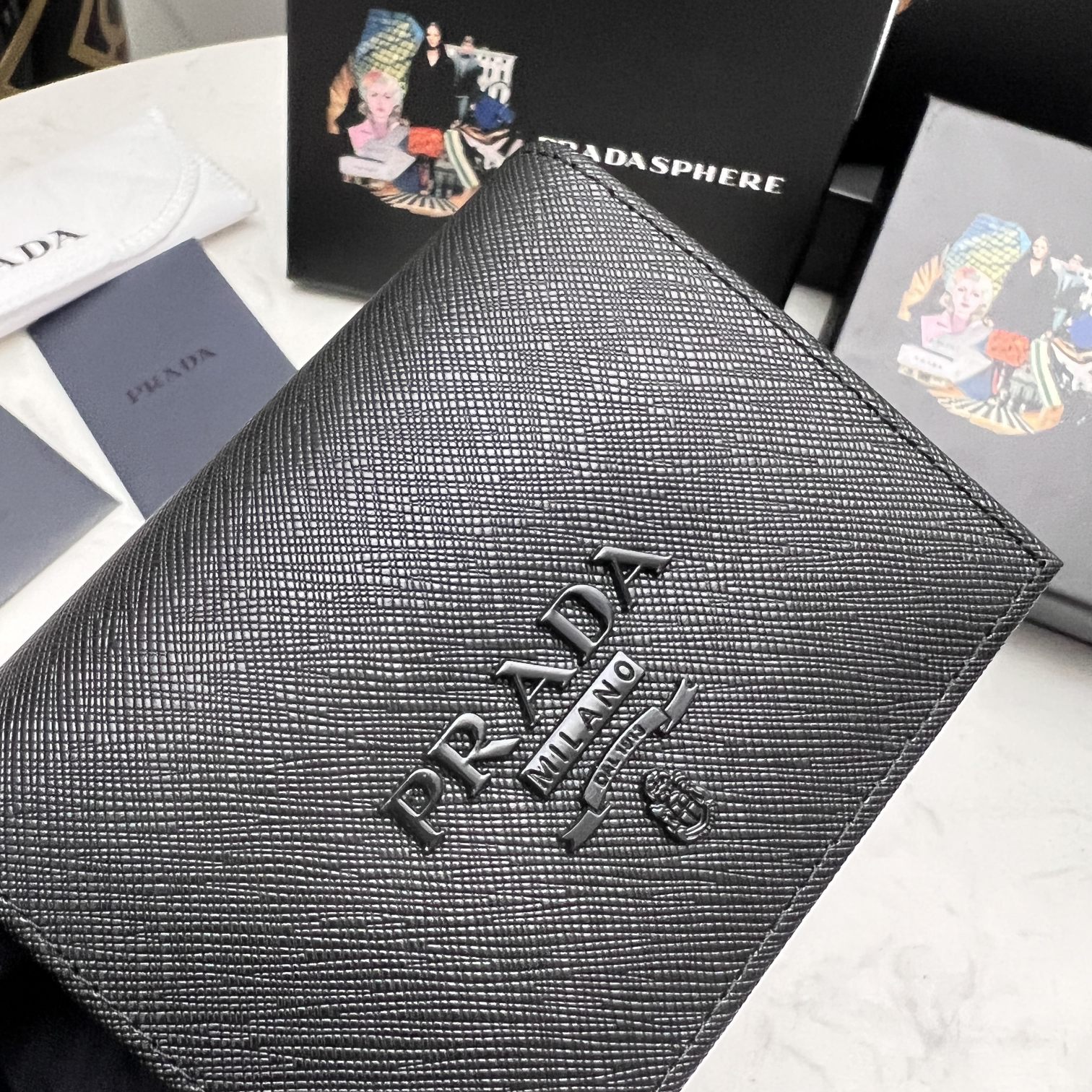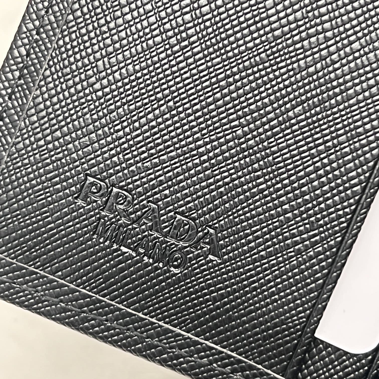 PRADA SAFFIANO MONOCHROME FLAP SMALL WALLET FULL BLACK 10CM 1MV204 QWA F0002