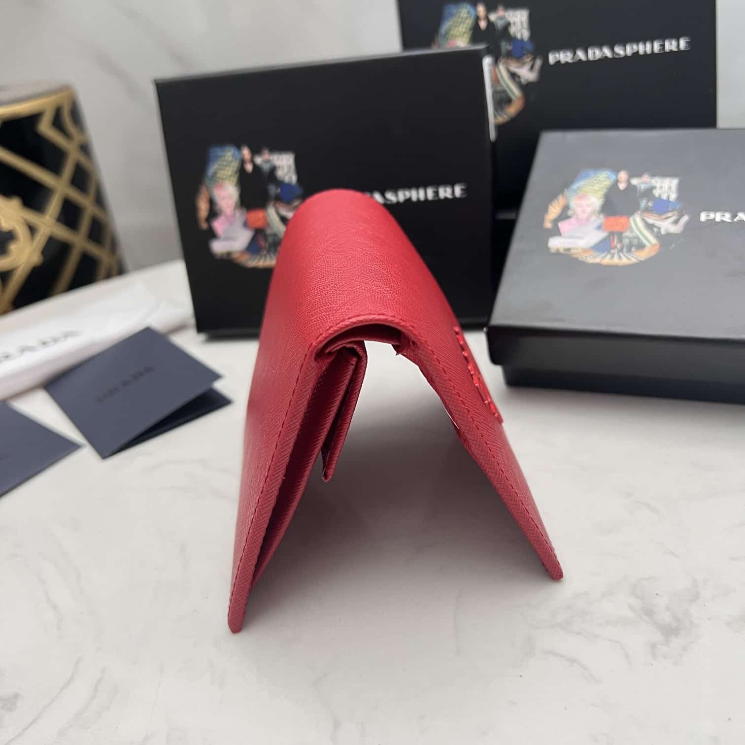 PRADA SAFFIANO MONOCHROME FLAP SMALL WALLET FULL RED 10CM 1MV204 QWA F0002